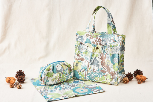 大口注文・法人のお問い合わせはこちら【INTERMODE Using LIBERTY ART FABRICS】のハンカチ、ポーチ、ランチトートのタンプ限定3点セットです。 機能性の高いランチトートに、ハンカチ、ポーチは肌触りも良く普段使いに便利です。