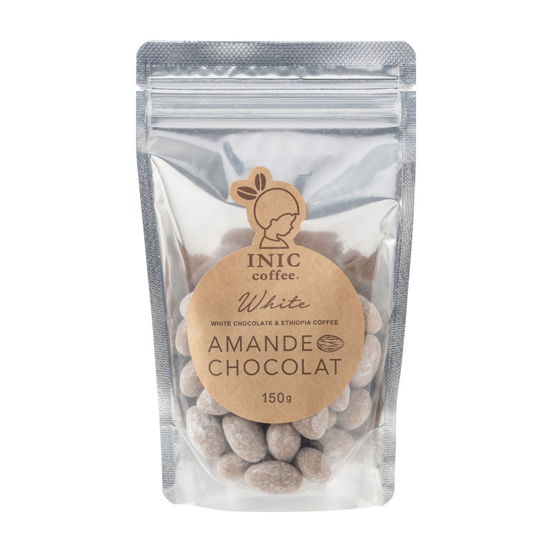 キャラメリゼしたローストアーモンドを使用。 香り華かなエチオピアコーヒーを混ぜ込んだホワイトチョコレートでコーティングしました。 カフェオレのようなまろやかな甘みとナッツの香ばしさがクセになり、手が止まらなくなる美味しさです。