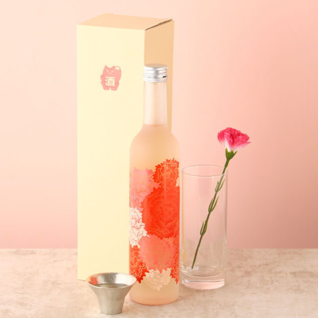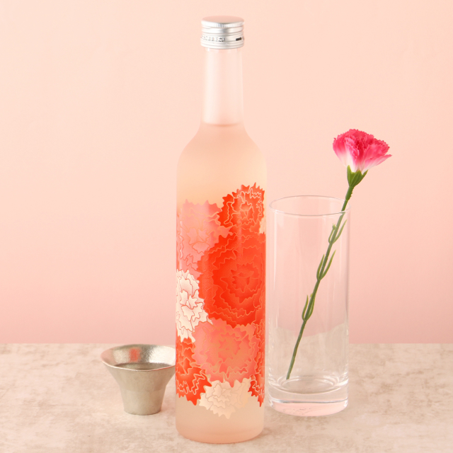 大口注文・法人のお問い合わせはこちらボトル全面にカーネーションの花がプリントされた、まるでカーネーションの花束のような日本酒です。繊細で可憐なボトルを手元に置きながらお酒を嗜む時間は、いつもより特別に感じられるかも。