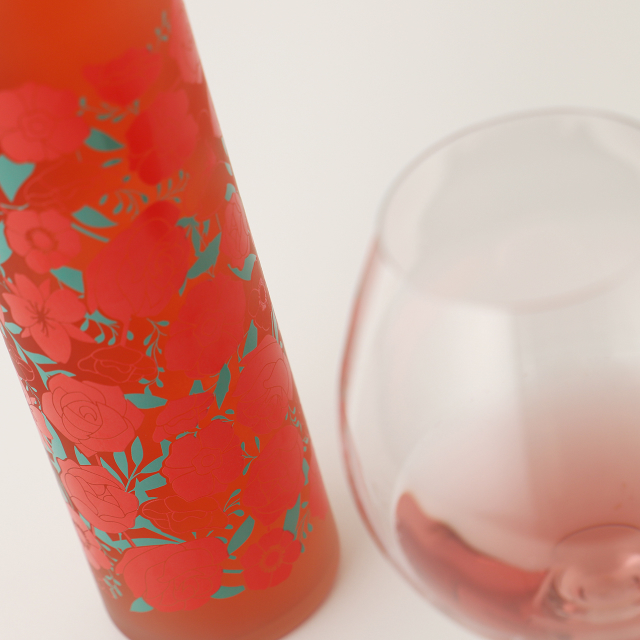 大口注文・法人のお問い合わせはこちらボトルに全面にきれいな花々がプリントされたロゼワインです。