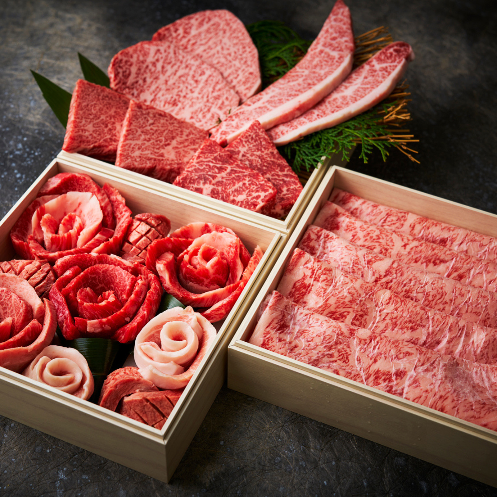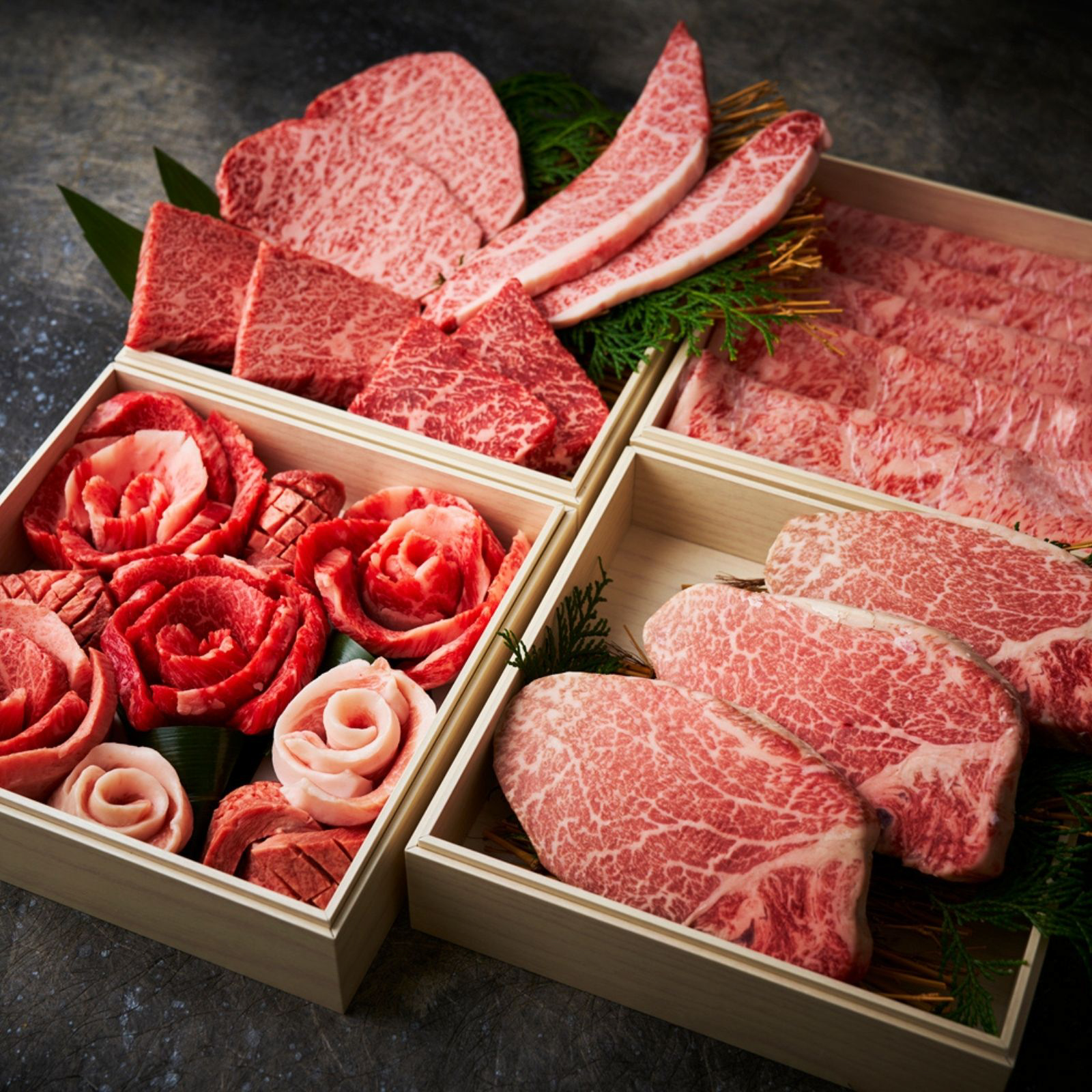 厳選した「シャトーブリアン」をプラスした豪華な4段セット。 【壱の重】内容量:600g ・上撰バラ 100g ・特選厚切り牛タン 100g ・トントロ 100g ・国産ロース 100g ・国産バラ 200g 【弐の重】 黒毛和牛しゃぶしゃぶ400g 黒毛和牛A4~A5ランクのみを使用。上品な脂の風味と肉の味わいが楽しめます。 【参の重】 厳選赤身4種 400g ◇職人が厳選した上撰・特撰赤身各2種 入荷状態がベストな部位をお届けします。最高級の部位です。 その柔かさと脂質の少なさから、老若男女問わず誰からも愛されている牛肉の一つです。贅沢で上質な味わいをお楽しみいただけます。 【肆の重】 シャトーブリアン450g ヘレの中心部で最も美味しいとされている「シャトーブリアン」非常に柔らかく、牛一頭から約600gほどしか取れない究極の希少部位です。 【自家製秘伝のタレ】 ・あっさりタレ1本(160ml) ・甘口タレ1本(160ml) ・塩だれ30g