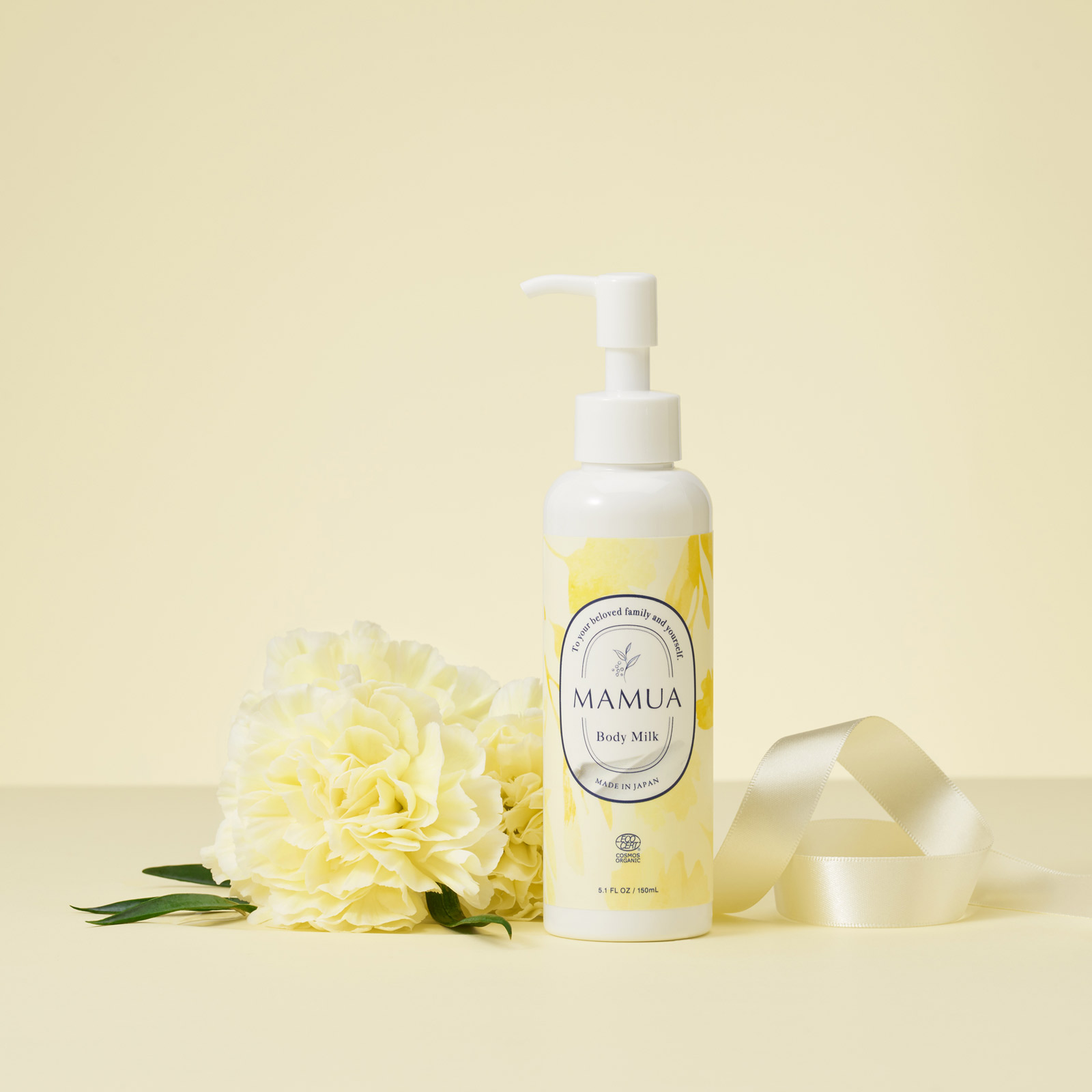 愛する自分と家族に思いやりを肌に届ける、日本生まれの本格オーガニックスキンケアブランドの「MAMUA (マムア)」のボディミルクです。天然由来成分100%で低刺激なので、家族で一緒にお使いいただけます。季節を問わず心地よく使え、潤いのヴェールで柔らかな肌に整えます。