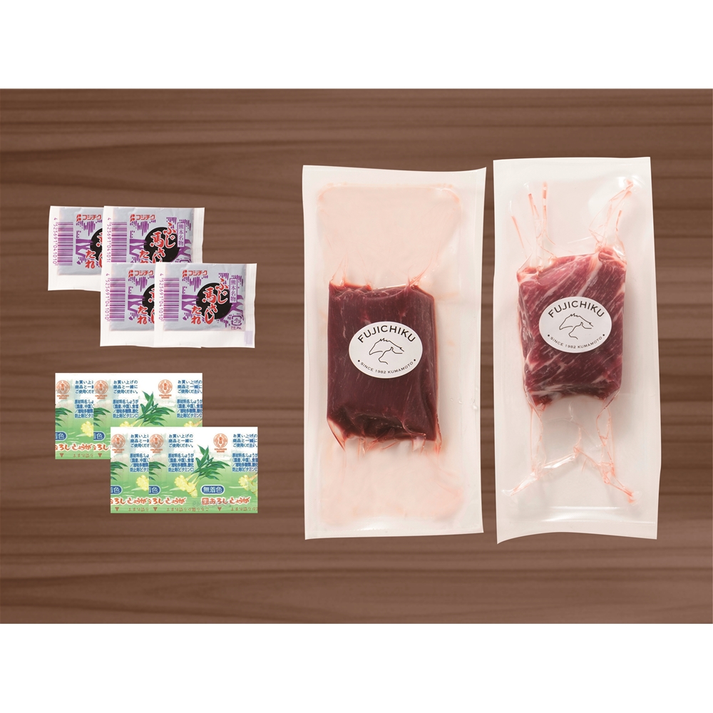 ・ふじ馬刺し上赤身80g×1 ・ふじ馬刺し中トロ80g×1 ・馬刺し用たれ5ml×4 ・生姜小袋3g×4