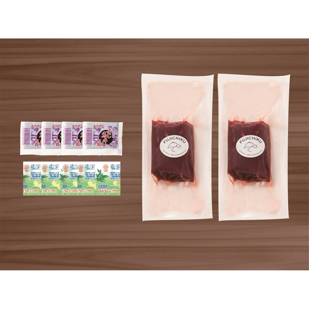 ・ふじ馬刺し上赤身80g×2 ・馬刺し用たれ5ml×4 ・生姜小袋3g×4