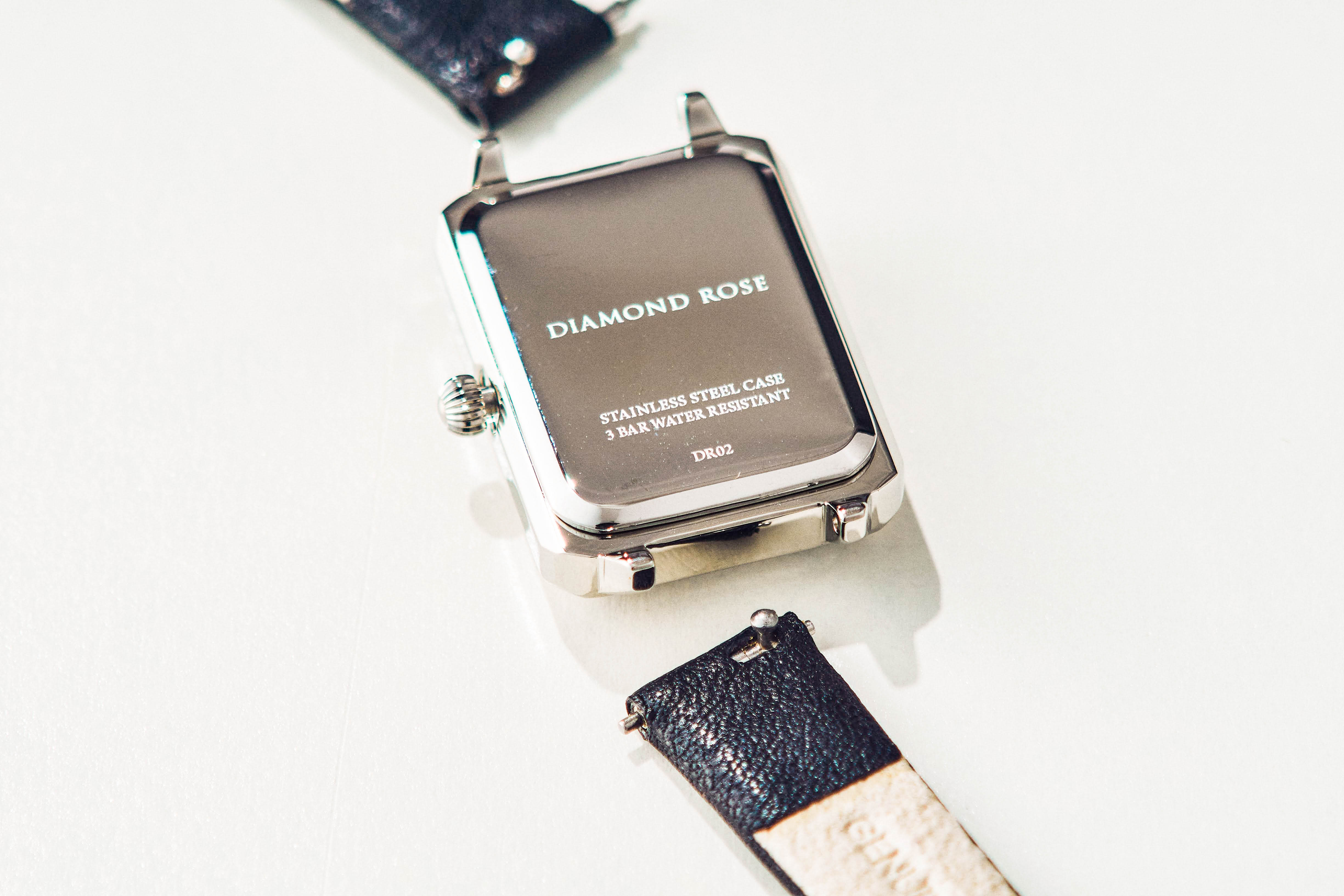 高級感漂う【DIAMOND ROSE】のレディースウォッチです。 シンプルな作りは、知的なイメージを与え、気品のある美しさを感じさせます。 カジュアルからビジネスシーンまで幅広いファッションに合わせられる デザインのため、大人の女性の方にぴったりです。 最高品質のプリザーブドローズボックスにお入れしてお届けします。 いつもお世話になっている方や、大切な方への贈り物としていかがでしょうか?