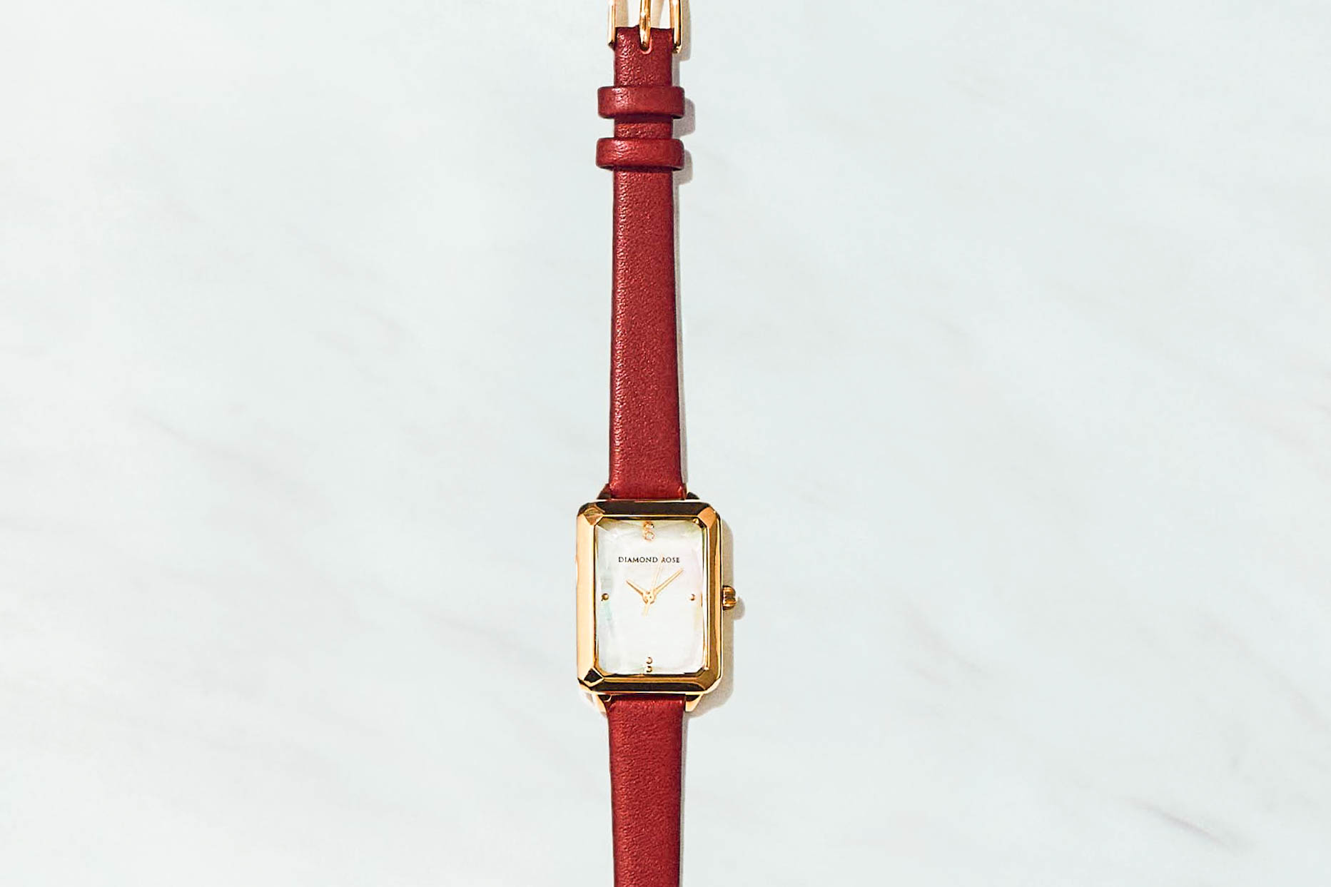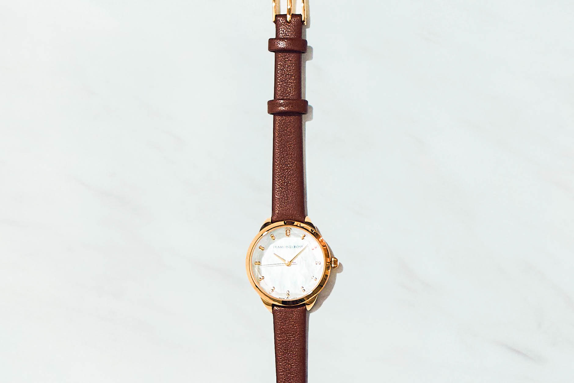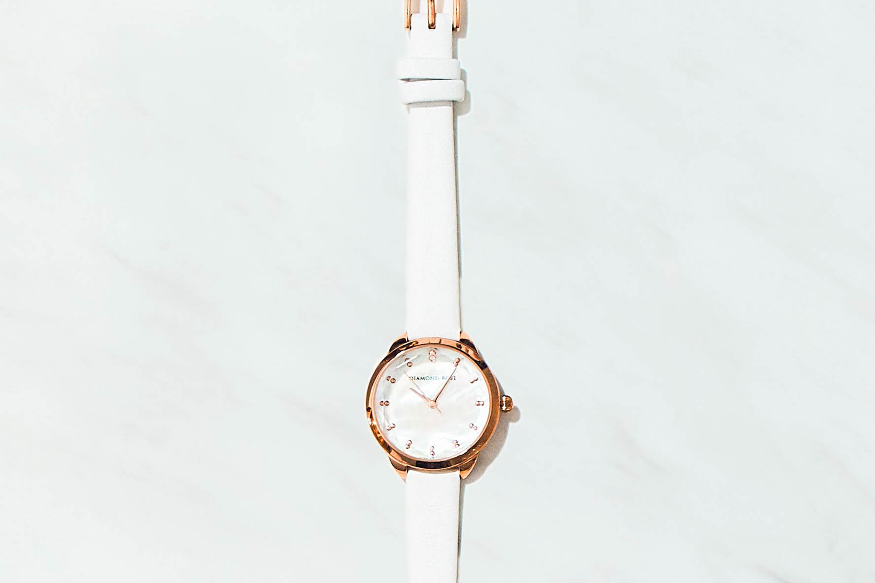 大口注文・法人のお問い合わせはこちらシンプルな作りは、知的なイメージを与え、気品のある美しさを感じさせます。 大きすぎず、小さすぎないサイズ感は、女性の手に馴染みやすいです。 また、文字盤の12時の位置には天然ダイヤモンドが輝き、文字盤は天然マザーオブパールを使用しています。 高級感と上品さを兼ね備えた大人の女性を演出します。
