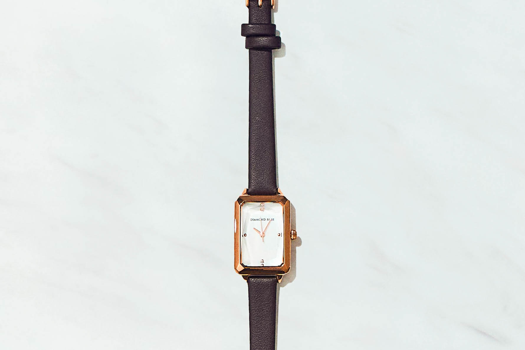 高級感漂う【DIAMOND ROSE】のレディースウォッチです。シンプルな作りは、知的なイメージを与え、気品のある美しさを感じさせます。カジュアルからビジネスシーンまで幅広いファッションに合わせられるデザインのため、大人の女性の方にぴったりです。最高品質のプリザーブドローズボックスに入れてお届けします。