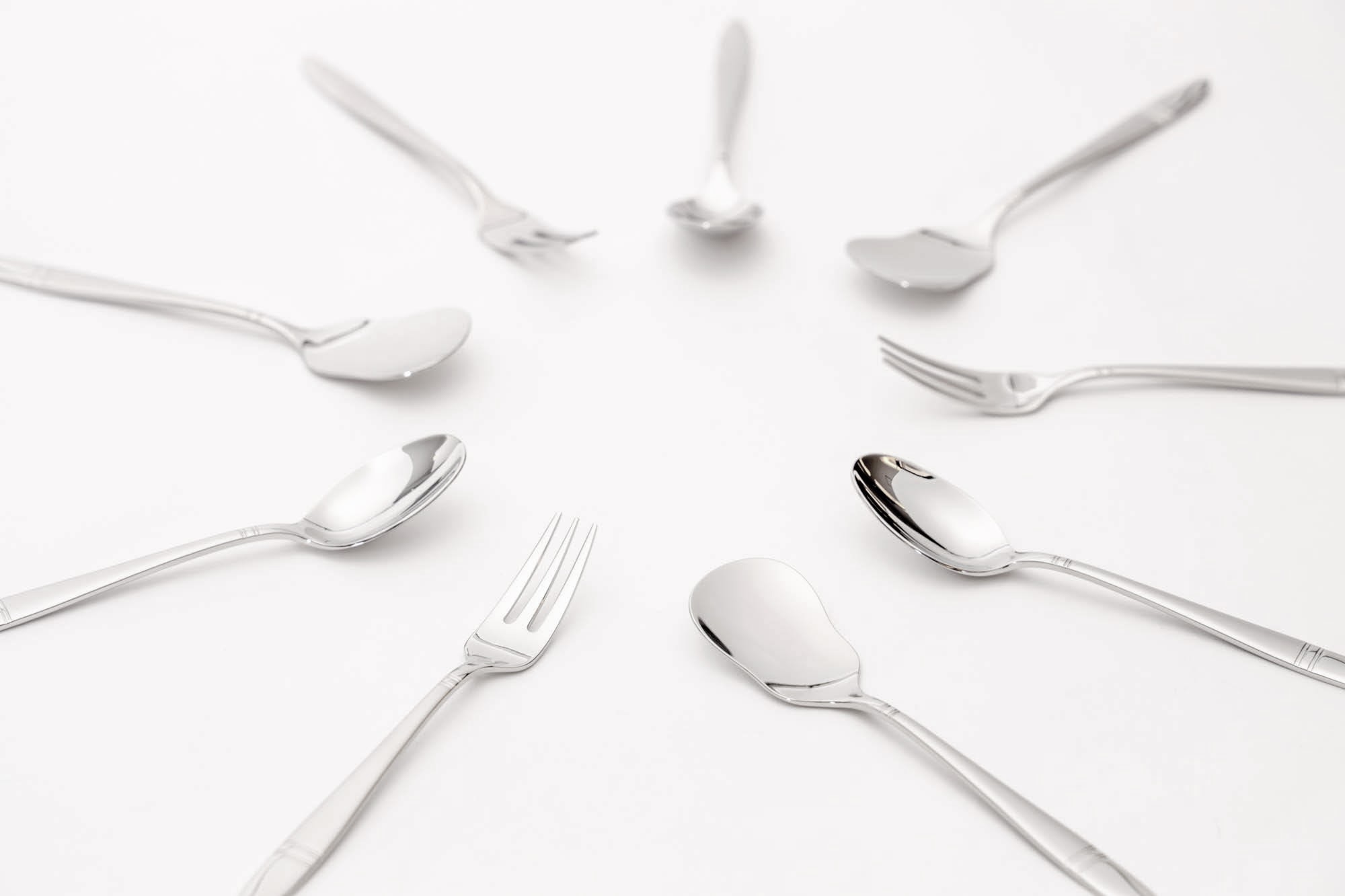 シンプルで無駄のないスタイリッシュなフォルムが特徴的なカトラリーです。