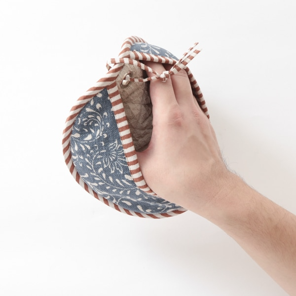 大口注文・法人のお問い合わせはこちらブロックプリント調のスクリーンプリントを凹凸のあるラフな素材感のスラブ生地にプリントして作った、ファブリックシリーズのラウンドミトンです。