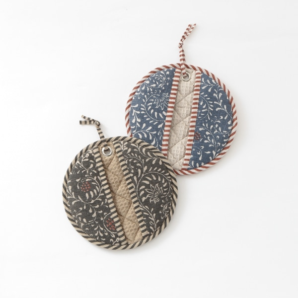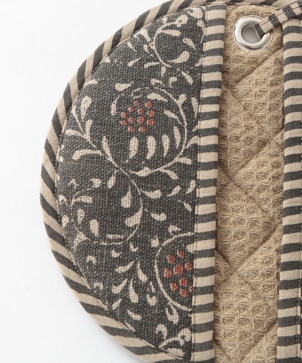 コットン100%のスラブ生地で作られたミトンです。ブロックプリント調のスクリーンプリントを凹凸のあるラフな素材感のスラブ生地にプリント。柄を組み合わせアクセントのあるデザインが魅力です。