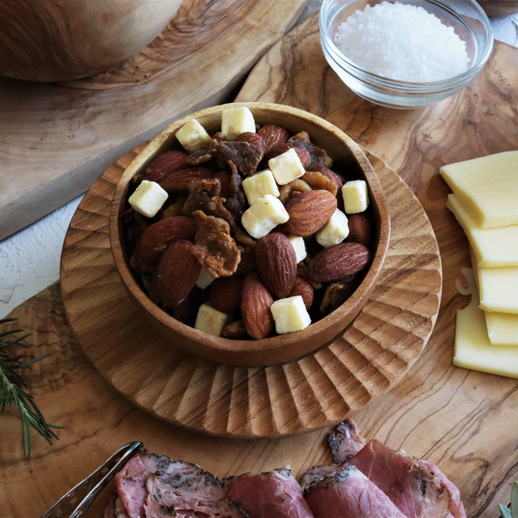 パッケージを開けた瞬間に広がる芳醇な黒トリュフの香りをお楽しみいただくため、トリュフの本場フランスよりゲランド産黒トリュフ塩を使用。アーモンド、カシューナッツ、マカデミアナッツ、くるみの4種のナッツがお楽しみいただけます。 トリュフの旨味を引き立たせるため、上質なトリュフ入りエキストラヴァージンオリーブオイルで味付けしたミックスナッツは、ちょっとリッチな午後のスナックにおすすめです。 「たまにはリッチなおつまみを食べたい!」という方や、ビールなどアルコールのお供に…!