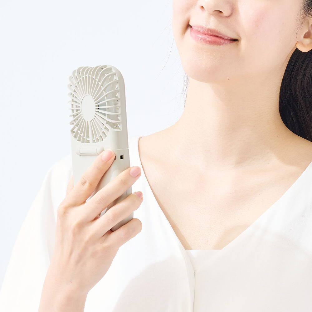 肌に直接あてて冷たい冷却プレート付きのハンディファンです。完全に折りたためるので、カバンにすっきりコンパクト収納が可能。夏のイベント、通勤・通学時の外出など、様々なシーンで大活躍間違いなしです。