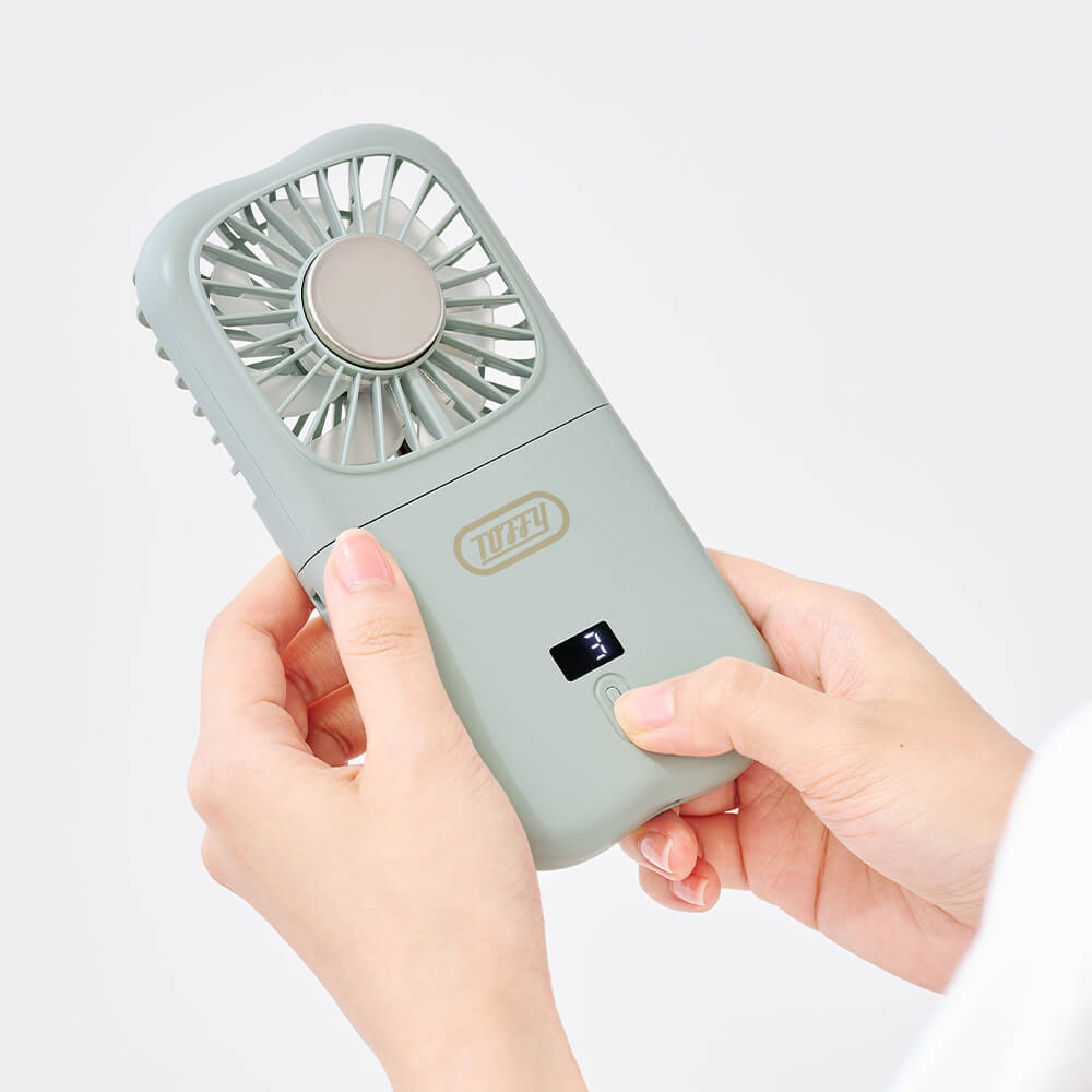 送風弱モードの場合、満充電で最大約9時間使用可能です。 通学や通勤、フェスなどでの使用におすすめです。
