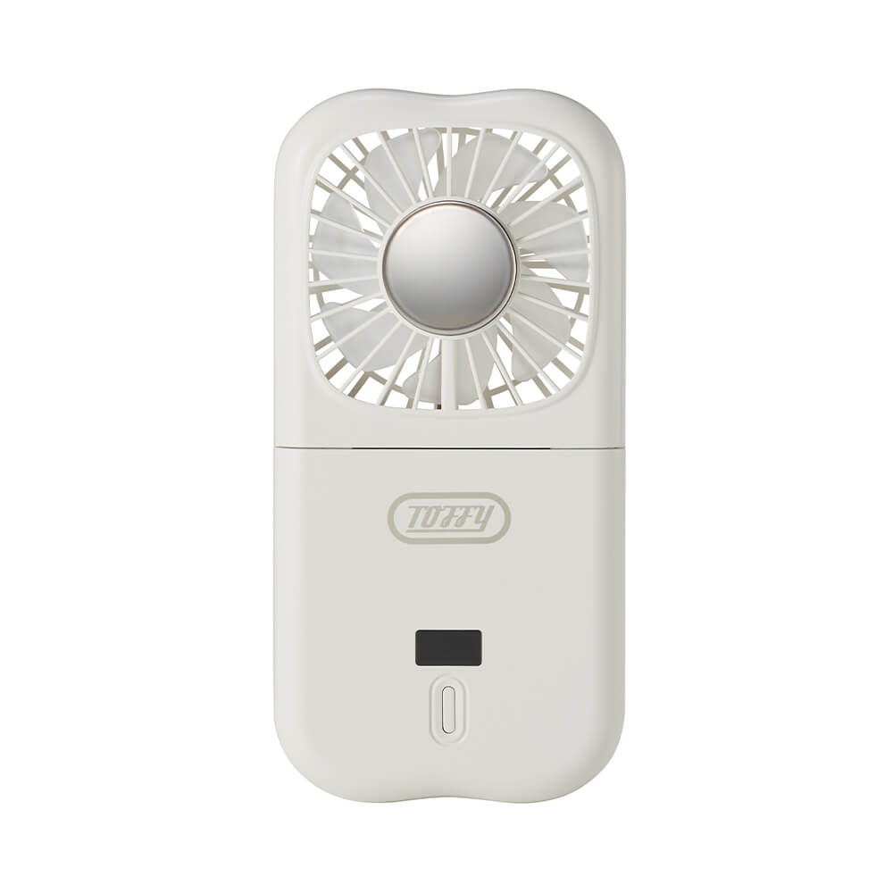 | 使用方法 | ①USB接続して充電をして下さい ※充電時間:約3時間 ②電源ボタンを2回短押しすると運転を開始します(風量:1) ③送風運転中、電源ボタンを押すと風量を切り替えることができます ※モード切替:1(弱)→2(中)→3(強)→OFF ④送風運転中、電源ボタンを1秒以上長押しすると冷却モードになり、冷却プレートが冷たくなります ※送風運転中でなければ冷却モードをONにできません。 ※冷却運転中は冷却マークがディスプレイに表示されます。 |