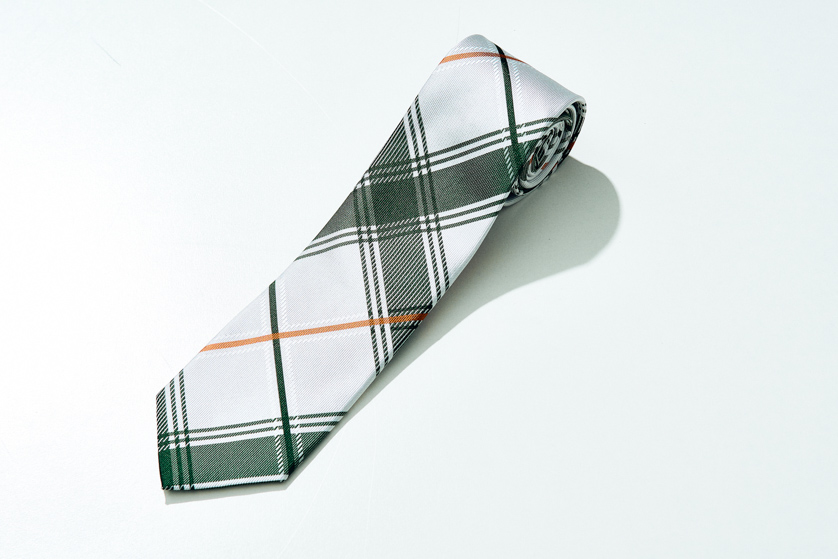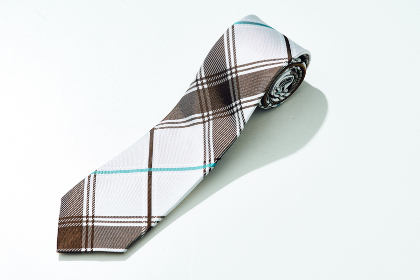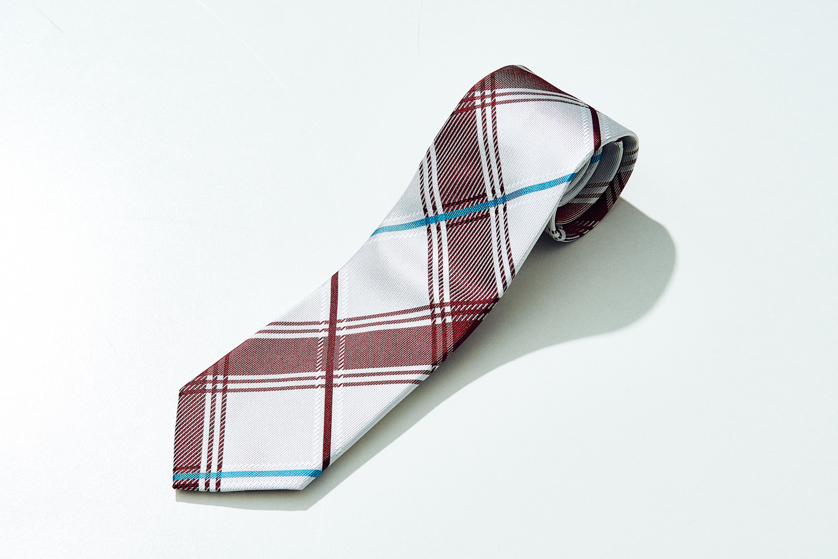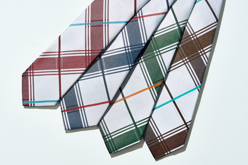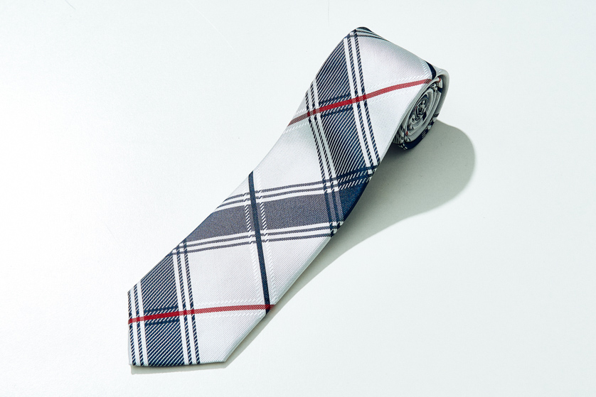 白を基調とし、センスのいい差し色が特徴的なチェック柄のネクタイです。