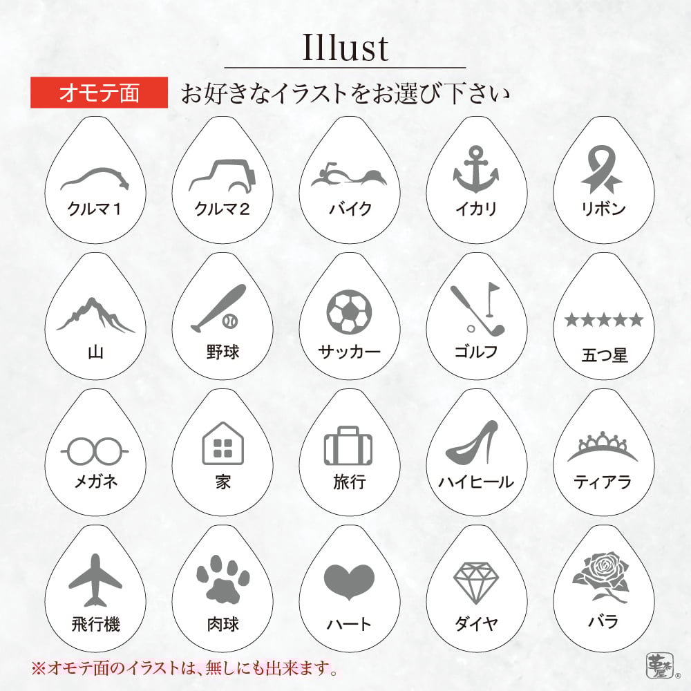 シルバーの輝きが魅力の名入れドロップキーホルダー。オーダーメイドで、あなただけの個性を演出します。 【オモテ面】イラストをお選びください 【オモテ面】名入れのフォントを選択してください 【オモテ面】名入れ半角英文字10文字以内で入力してください