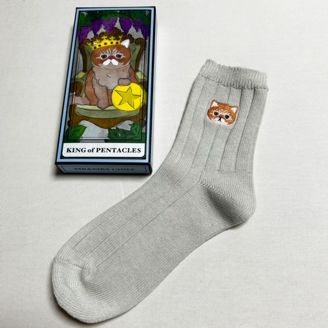 人気INU,NEKOシリーズにソックスが誕生。タロットカード風のイラストが入ったオシャレなパッケージ入り。リブ編により伸縮性が高く、優れた履き心地で通年ご使用いただける綿の主素材に、INUの刺繍が可愛いソックスです。