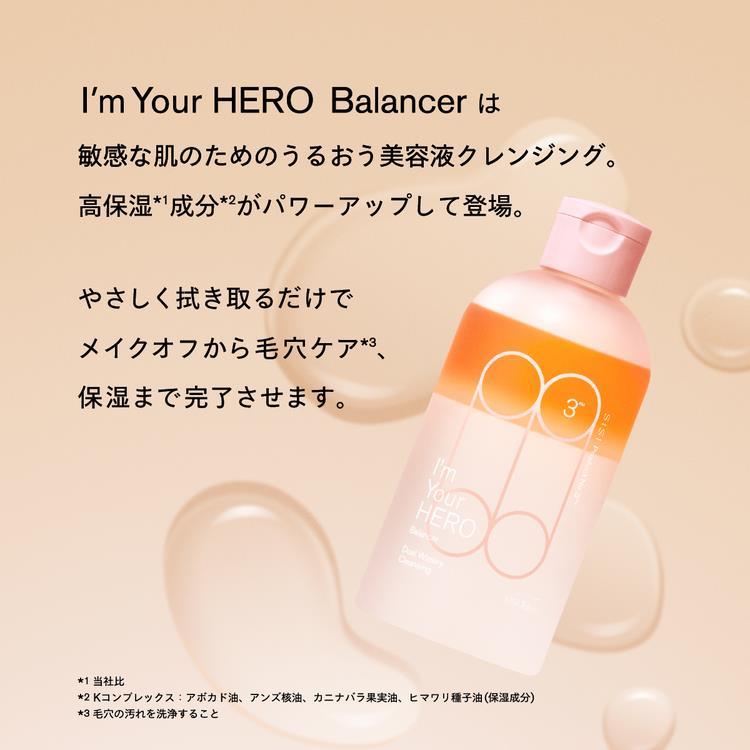 日やけによるシミ・そばかすを防ぎながら朝塗りたての顔印象が長時間つづくUV下地とメイクを落とすだけじゃない毛穴をケア*1する、美容液発想の2層式クレンジング「アイムユアヒーロー」。3種類の中からお選びいただけます。