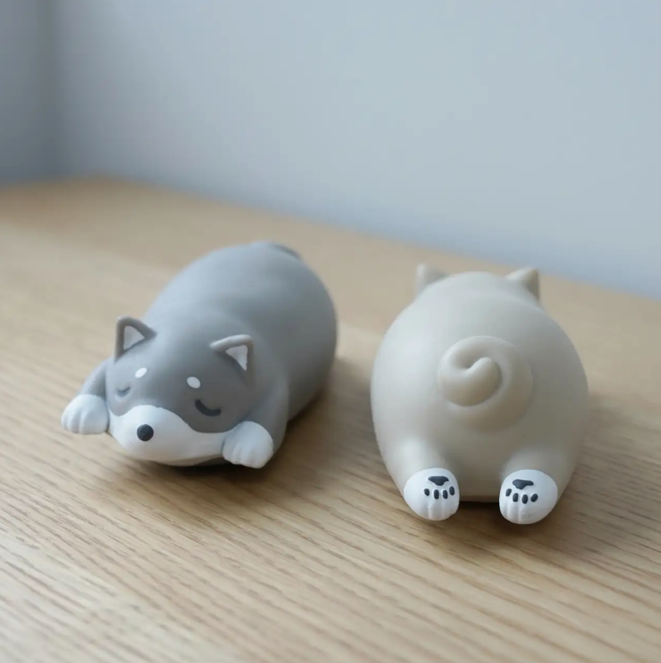 大口注文・法人のお問い合わせはこちらぷにぷに触感が新しい、柴犬の形をしたリラックスグッズ。 お散歩に疲れたのか、お昼寝をしているのか、、、なんとも言えないぐでっとしたフォルムがたまらなく可愛い。 柴犬の特徴でもある「まろ眉」も再現しているので、柴犬マニアさんにもハマること間違いなしです。 ぎゅーっと伸ばすとストレス発散にも最適です。 オフィスや自宅で大活躍する、新しい癒しのアイテムをぜひお試しください。 ◉伸ばして、にぎにぎして、ストレス発散に! ◉手首をやさしく支えるリストレストとして! ◉スマホスタンドにも!
