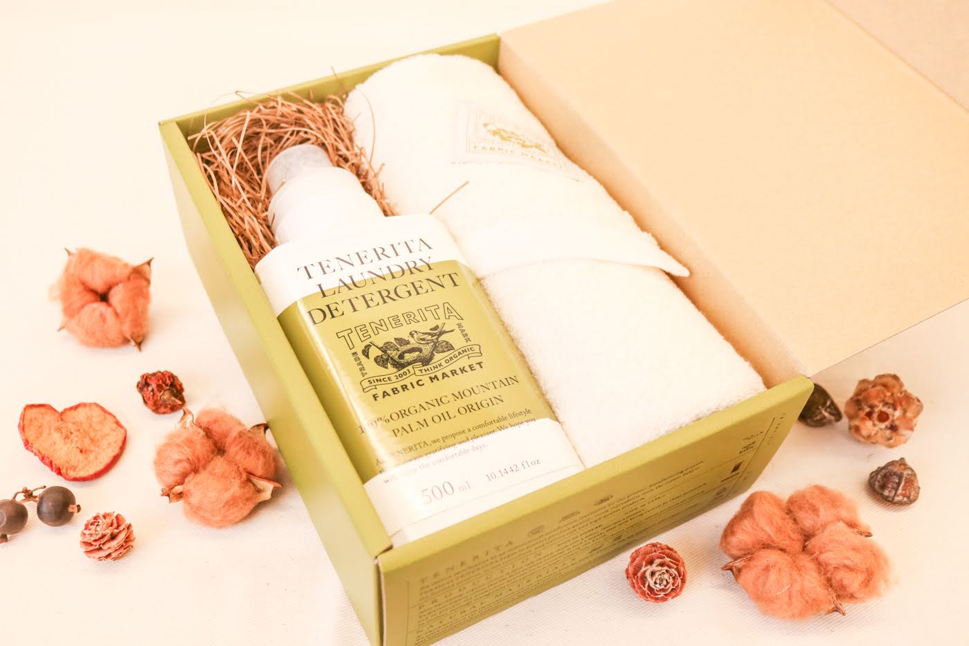 世界で最も厳しい基準をもつといわれるドイツのオーガニック認証をもつ、TENERITAの超甘撚りフェイスタオル&LAUNDRY DETERGENTセットです。