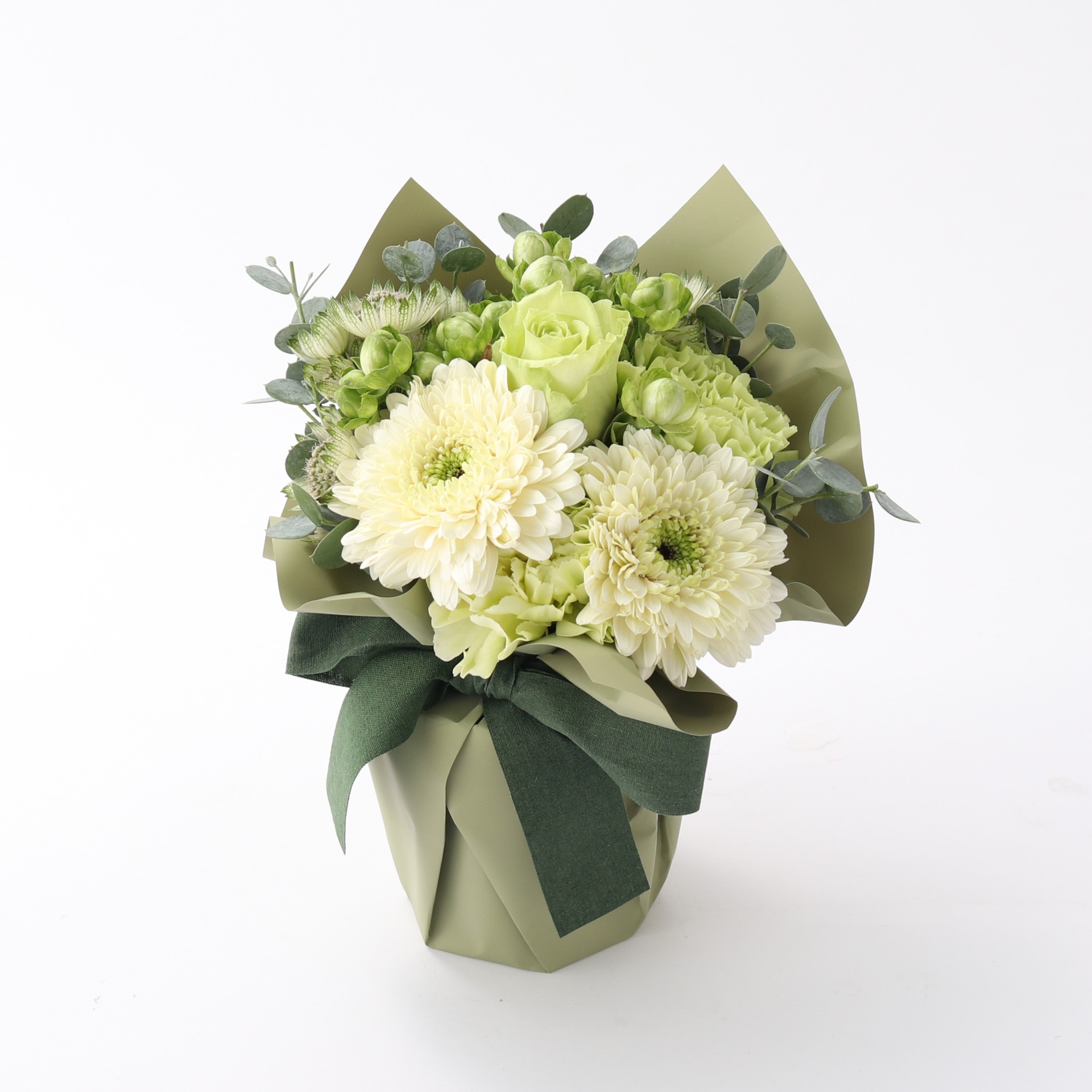 大口注文・法人のお問い合わせはこちら様々なシーンにも対応することができ、爽やかさや上品さを兼ね備えた、どなたにも喜ばれるデザインとなっています。 基本スタイルをベースに、お客様のご希望のカラーにてお作りします。 ※商品画像はイメージサンプルです。 ※生花の種類は季節によって一部変更になる場合がございます。