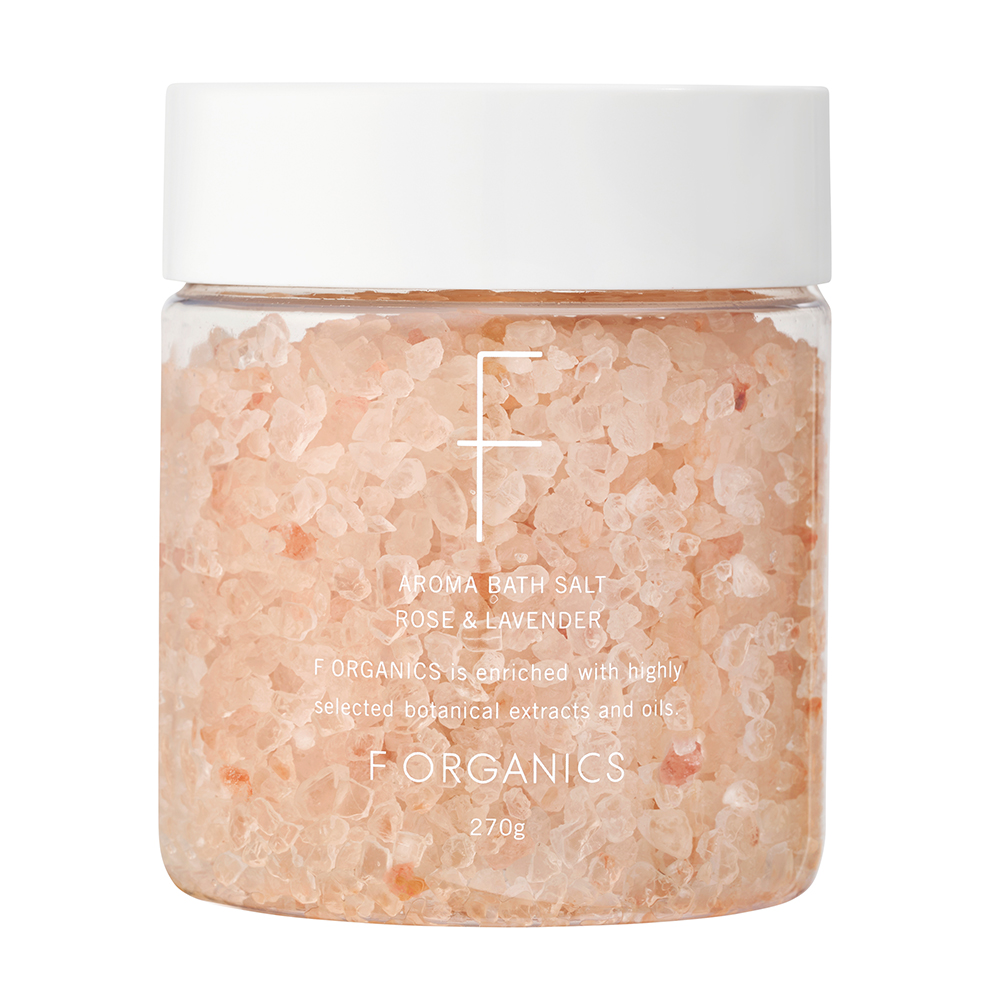 F ORGANICS(エッフェオーガニック)のバスソルト。ブルガリアンローズ&トゥルーラベンダーの香りが心と身体を満たし、良質な睡眠へと導きます。自然派やナチュラル志向のお相手の方に喜ばれる癒しのバスギフトです。