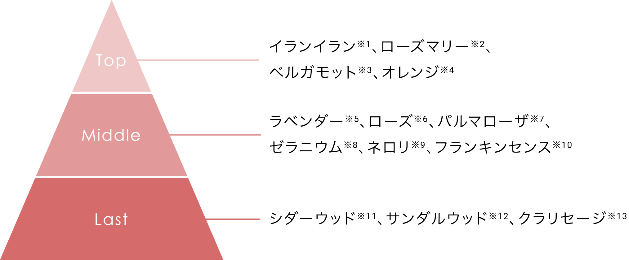 ◾️ブルガリアンローズ 「バラの女王」や「精油の女王」などと呼ばれる最高品質のブルガリア産ローズ。 精油はが採取できるのは100本からわずか1滴。 上品で華やかな香りは心を落ち着かせて明るい気持ちへと導きます。 女性特有の生理痛や更年期などの症状を緩和し、ホルモンバランスを整える効能も。 ◾️トゥルーラベンダー 多品種あるラベンダーの中から安眠に良いと言われるのがトゥルーラベンダー。 安眠効果のある「酢酸リナリル」が多く含有されており、 そのハーバルで柔らかな香りは交感神経を刺激し、 心をリラックスさせて良質な睡眠へと導きます。