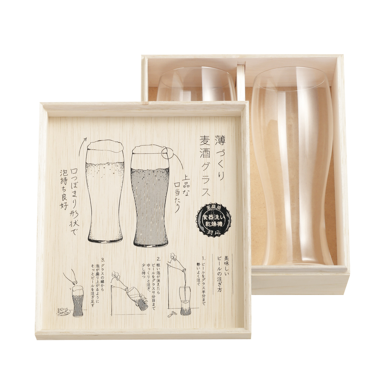 | 薄づくり麦酒グラスセット | ◾️外装サイズ 幅16.7cm×縦19.2cm×高さ8.6cm ◾️サイズ/容量 サイズ:口径6.3cm×高さ17cm・最大径6.9cm 容量:395ml ◾️材質 ソーダライムガラス ◾️生産国 日本製 |