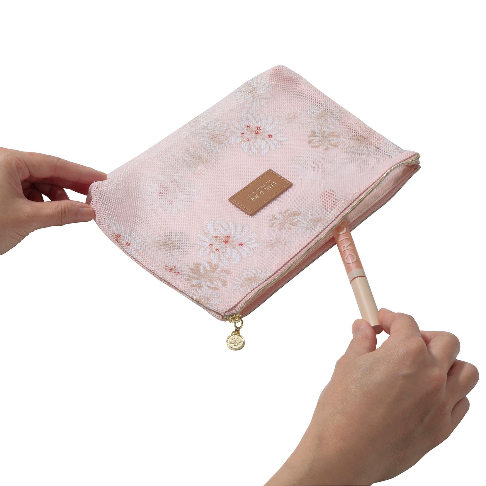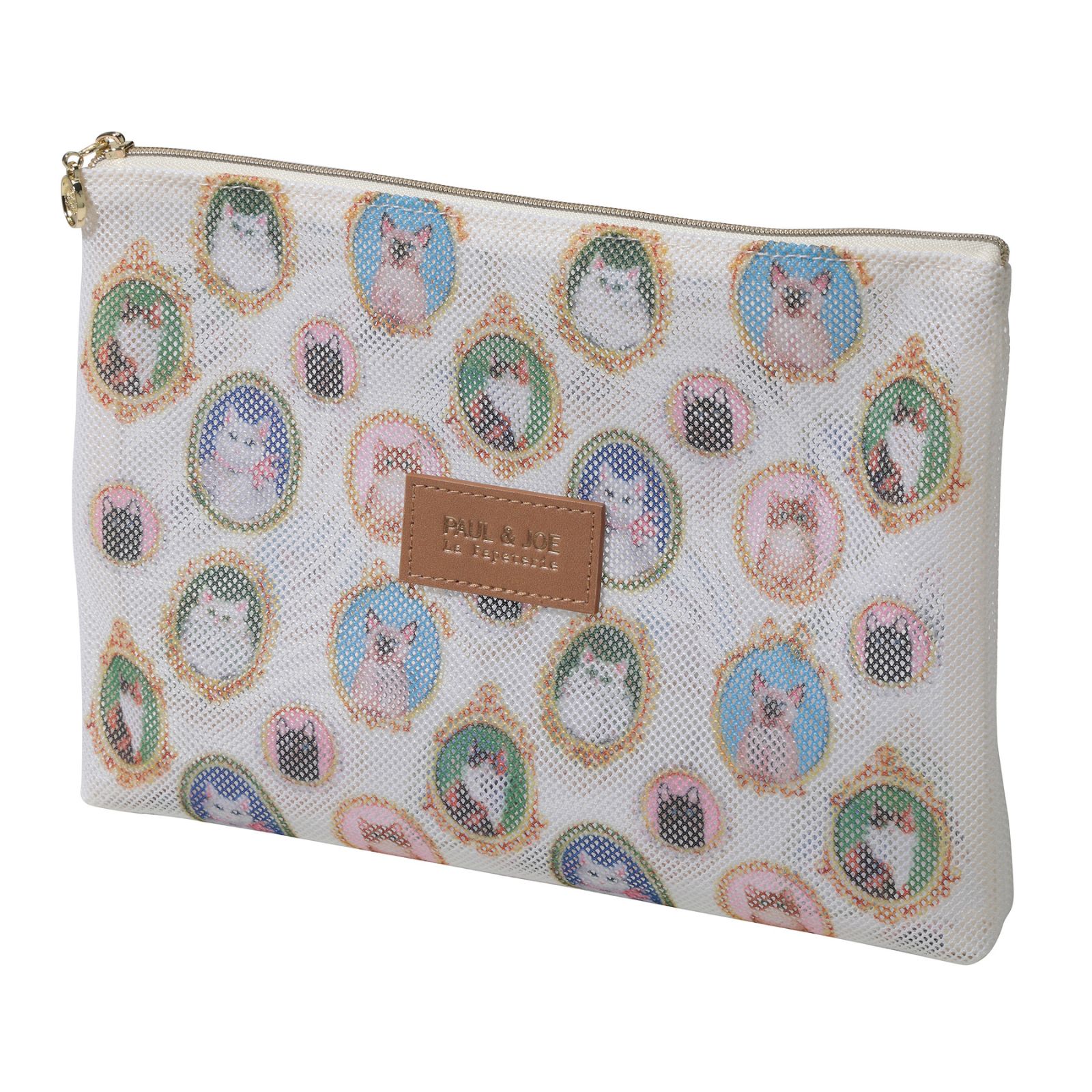 フランスのファッションブランド「PAUL & JOE(ポール&ジョー)」のステーショナリーライン「PAUL & JOE La Papeterie(ポール & ジョー ラ・パペトリー)」のメッシュタイプのフラットポーチ。シアーな透け感があるメッシュ生地を使用した、涼しい見た目がおしゃれなアイテムです。