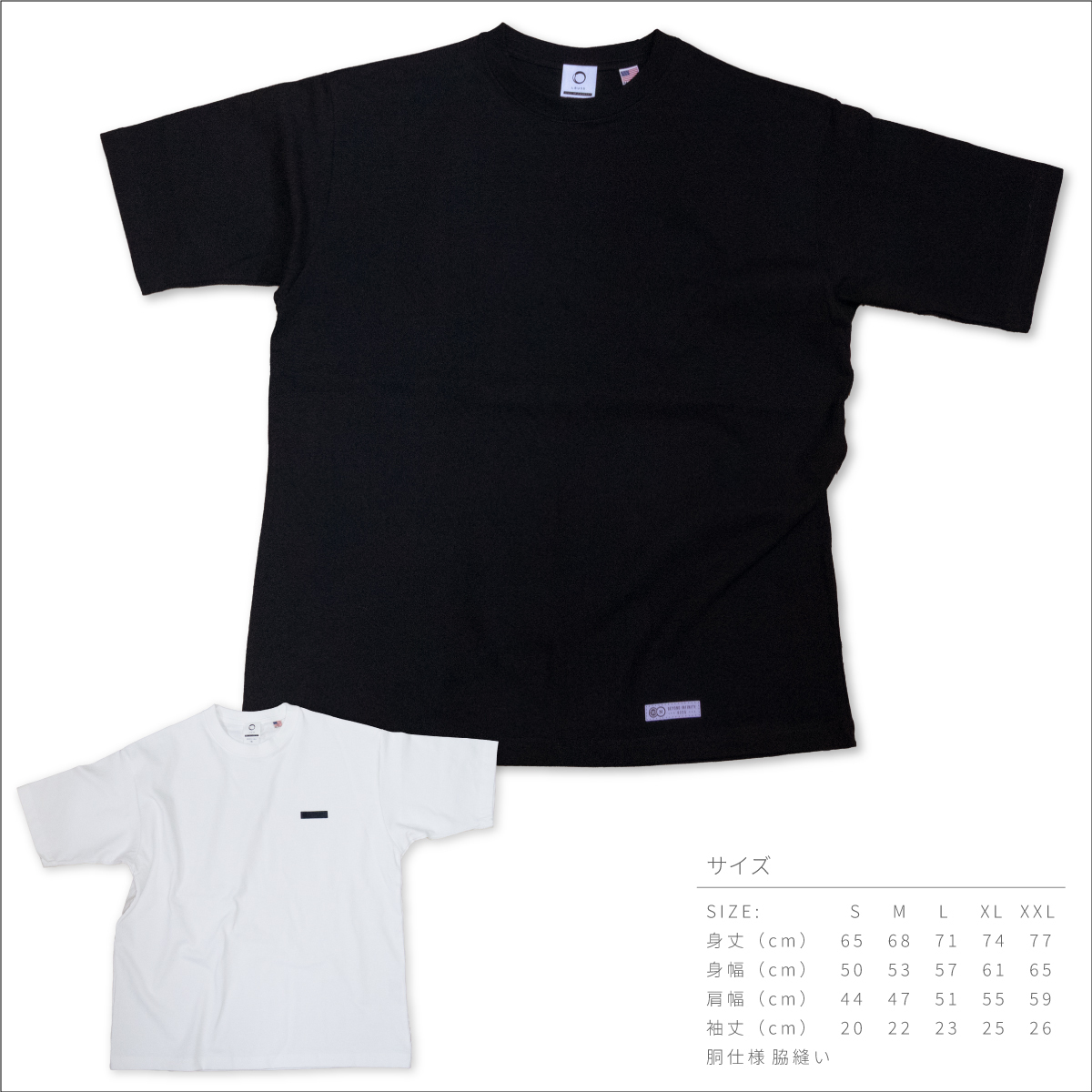 Tシャツのカラーは「ホワイト/ブラック」の2色より、サイズは「S / M / L / XL / XXL」よりご選択いただけます。 ※Tシャツはゆったりシルエットを感じる+1サイズアップ程がお勧めです。