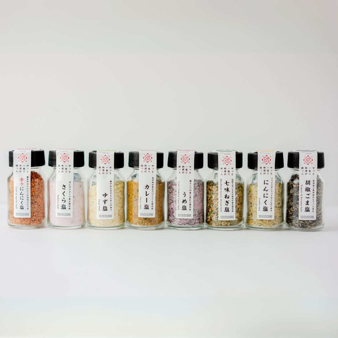 大口注文・法人のお問い合わせはこちらいつもの料理にさっとひとふり。 しおはち全8種が楽しめるお得なセットです。