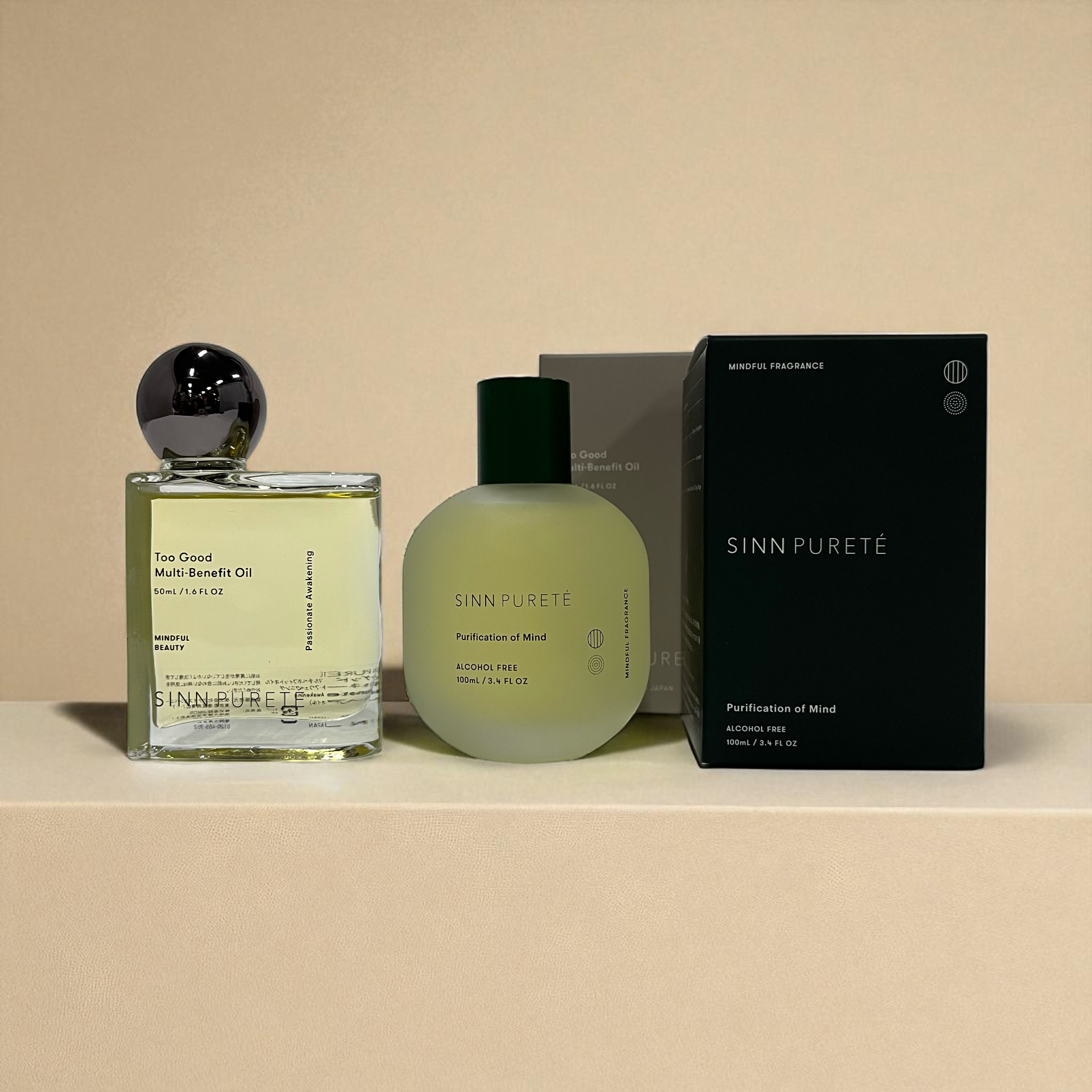 スタイリングオイル、タオルドライ後のヘアオイル、ボディオイルとマルチに使えるべたつかないオイルと気持ちを高め、心を整えてくれるノンアルコールフレグランスのセットです。