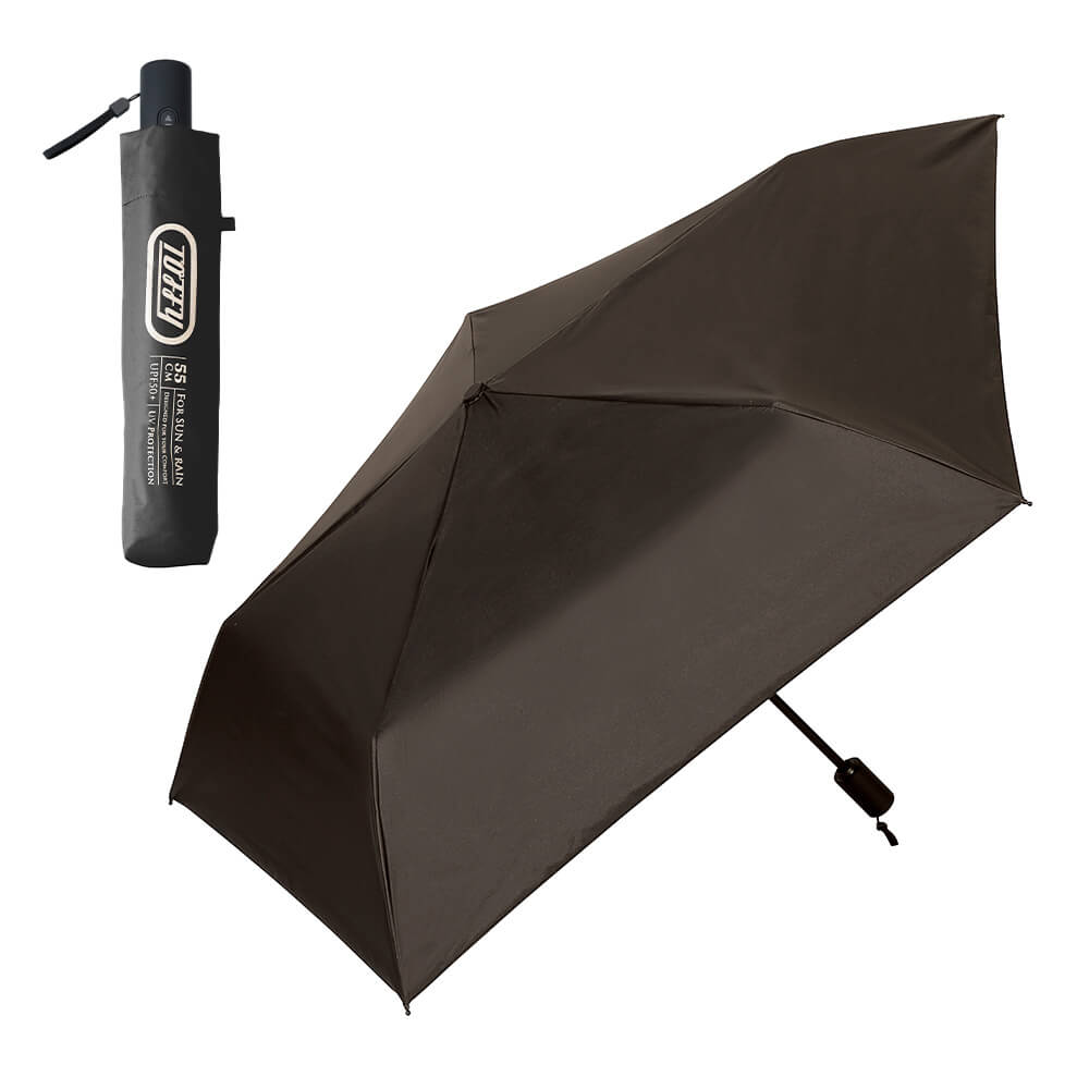 日差しと紫外線をカットすることができ、遮熱効果(リッチブラック除く)に優れた自動開閉式晴雨兼用折りたたみ傘です。親骨が55cmで男性も使いやすいサイズ感で、旅行や日常使いに最適です。UVカット率は99.9%、UPF50+、完全遮光の機能性の高さも備えています。
