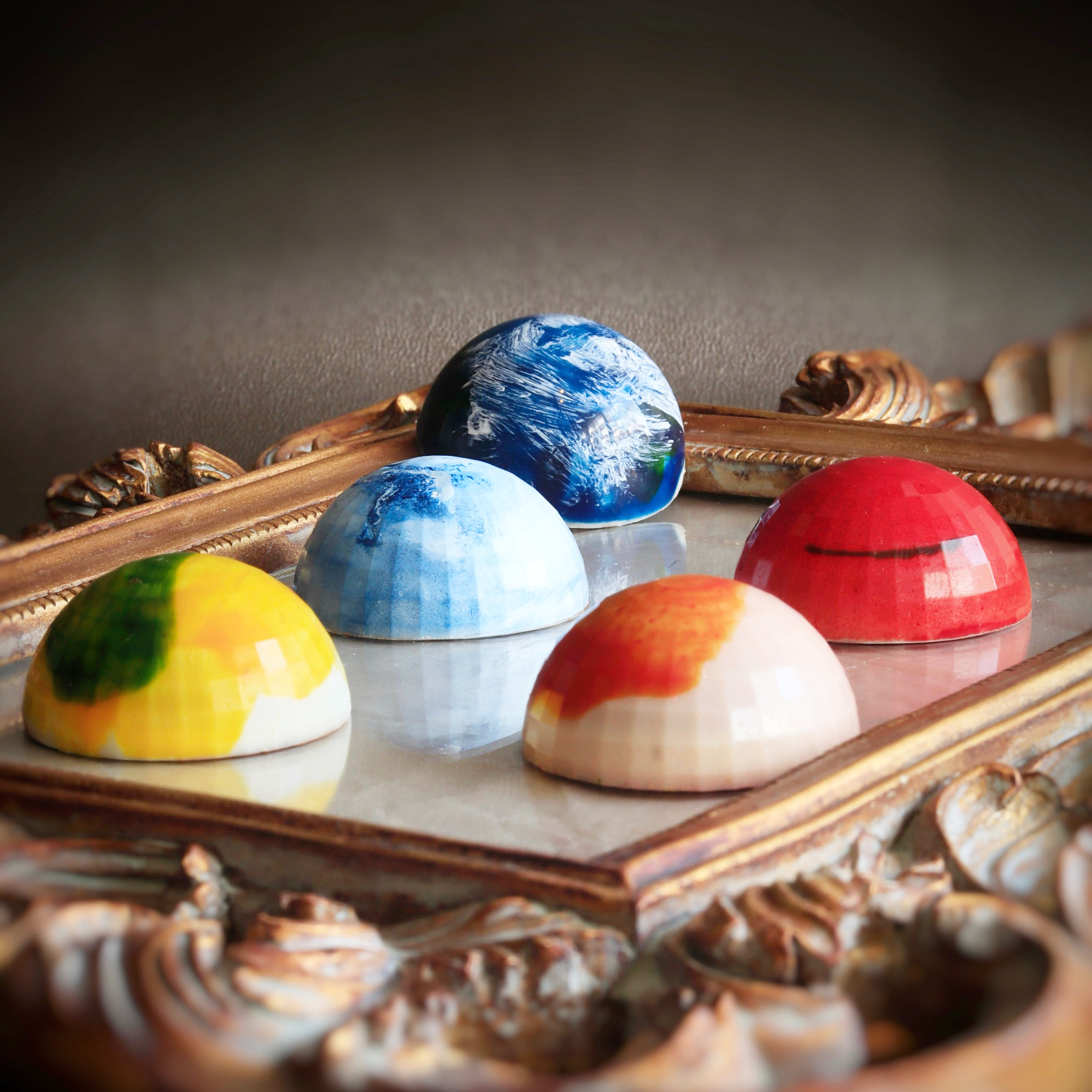 一つ一つ手描きの地球に、自然と共にある喜びと感謝をこめて。 聖なるハーブ、トゥルシー、非加熱のハチミツ、アーモンドで大地の恵みを。 あなたにとって「今ここ」である地球はどんな味わいなのでしょうか?