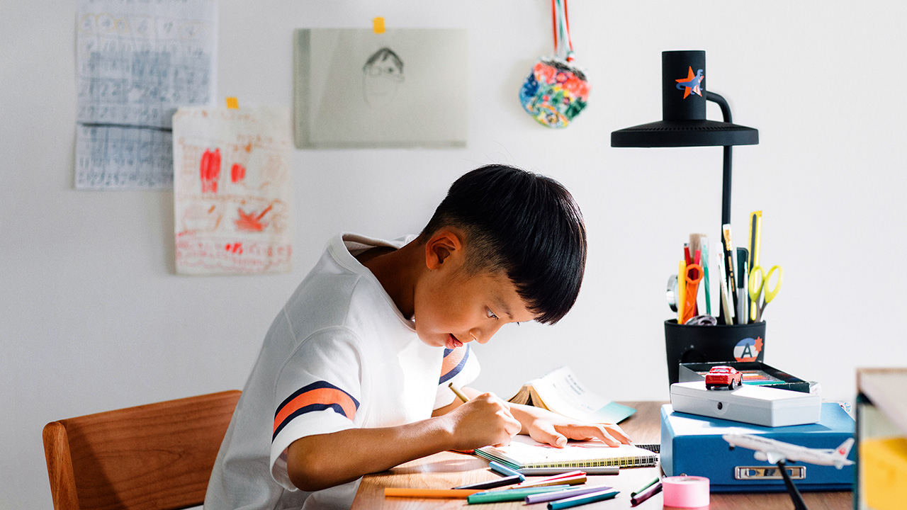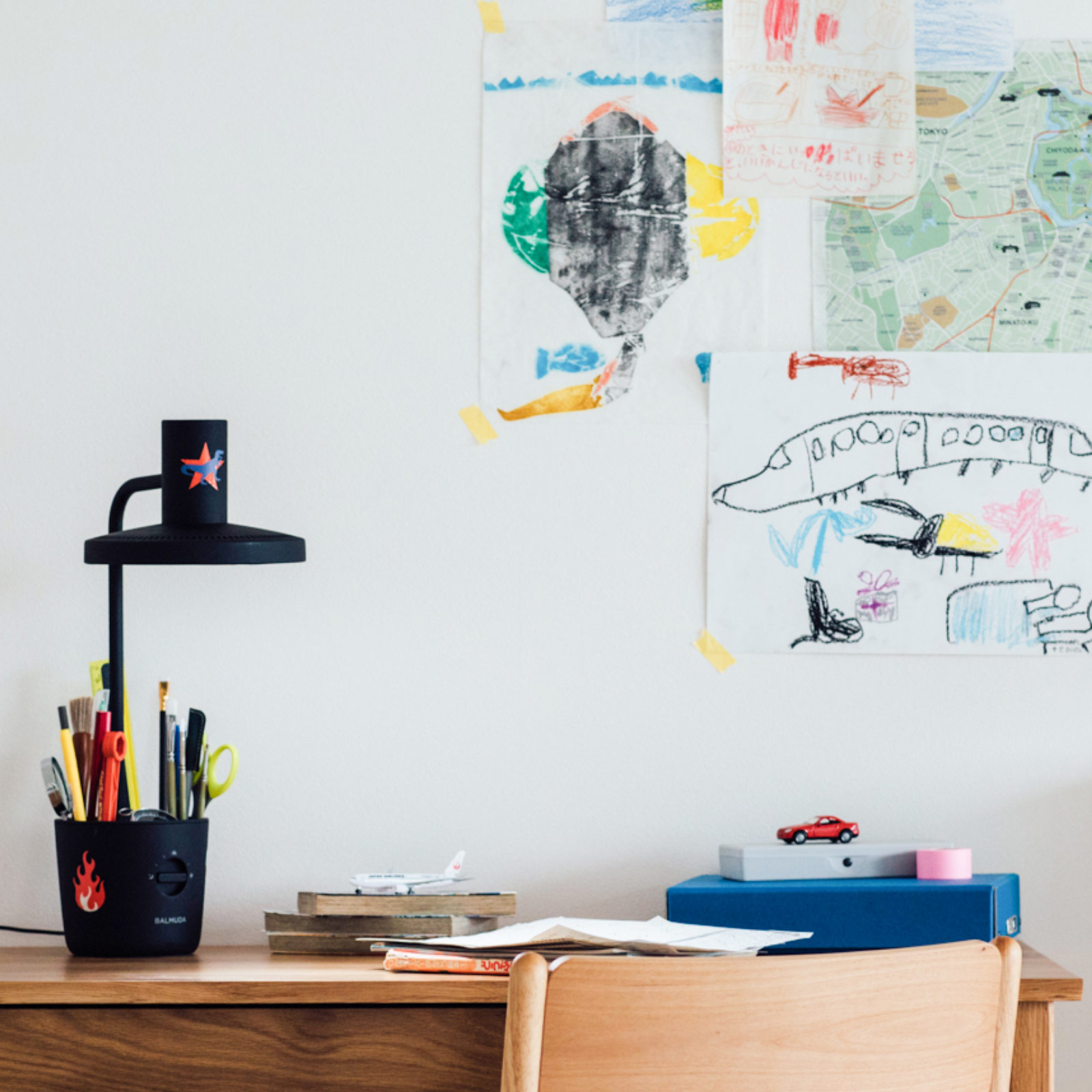 BALMUDA The Lightは、目線の先に影を作らない独自の光拡散技術と、医療現場でも使われる太陽光LEDを採用したデスクライト。子どもの学習やデスクワークで使う真剣な眼差しを守り、集中力を後押しします。
