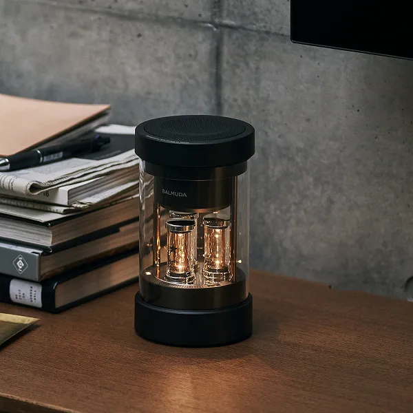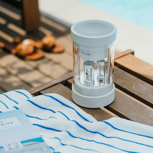 音楽体験をデザインするバルミューダのスピーカー。上向き構造による360°立体サウンドと、グルーヴを高める光の輝き。まるでライブ会場のような臨場感を、充電式でどこへでも。
