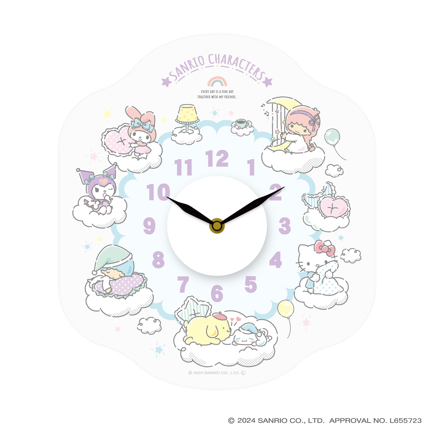 かわいいサンリオキャラクターたちがお部屋を明るくする、貼るだけ簡単設置のウォールクロックです。