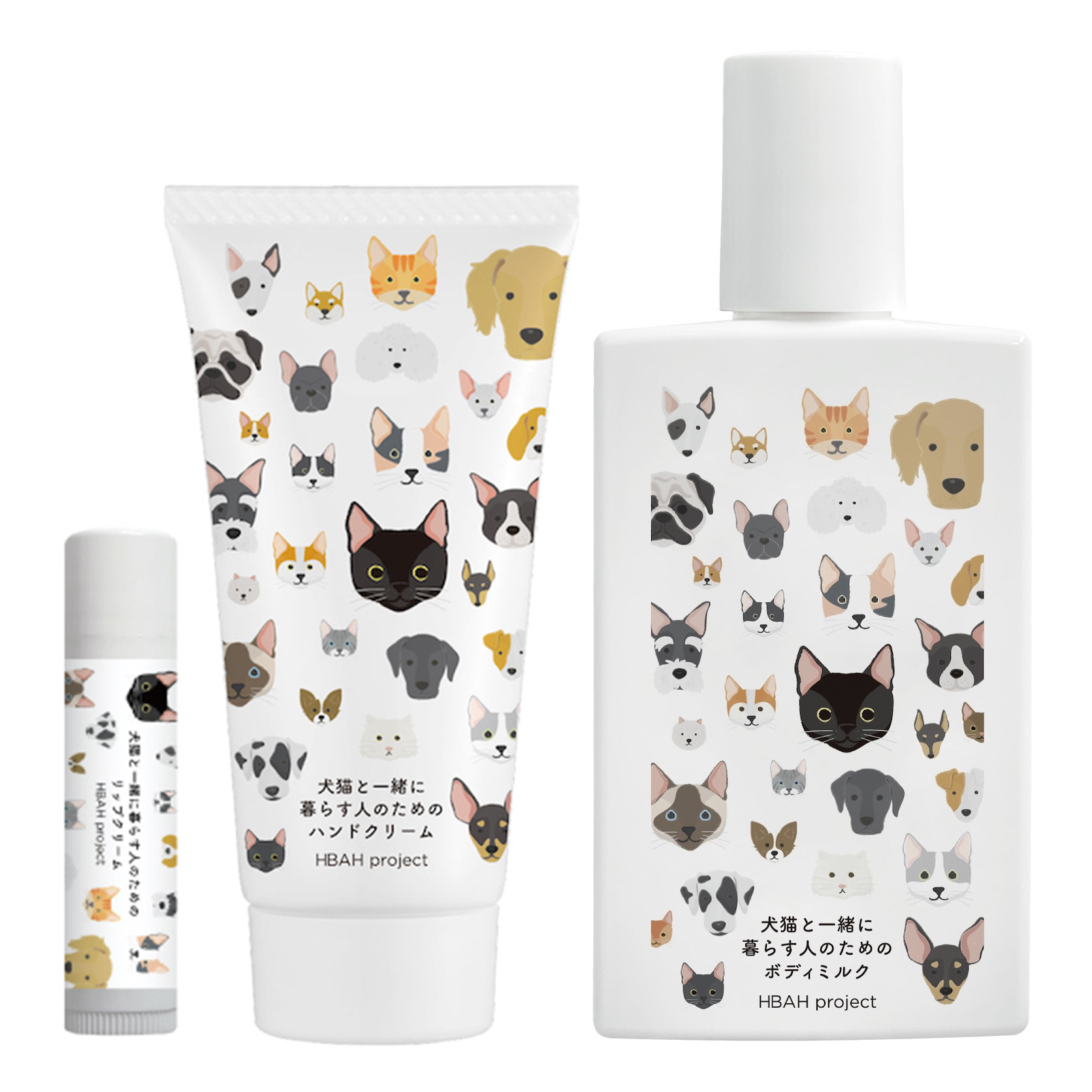 大口注文・法人のお問い合わせはこちら手肌を守るハンドクリーム、全身を潤すボディミルク、唇をケアするリップクリームの3点を揃えた贅沢なセット。「ペットが舐めても安心」な優しい処方だから、どのアイテムも気兼ねなく使えます。頭からつま先まで、ペットが安心してふれあえる、穏やかで幸せな時間を贈ります。