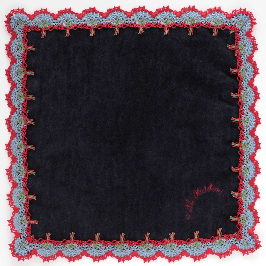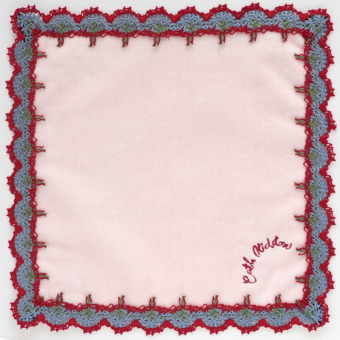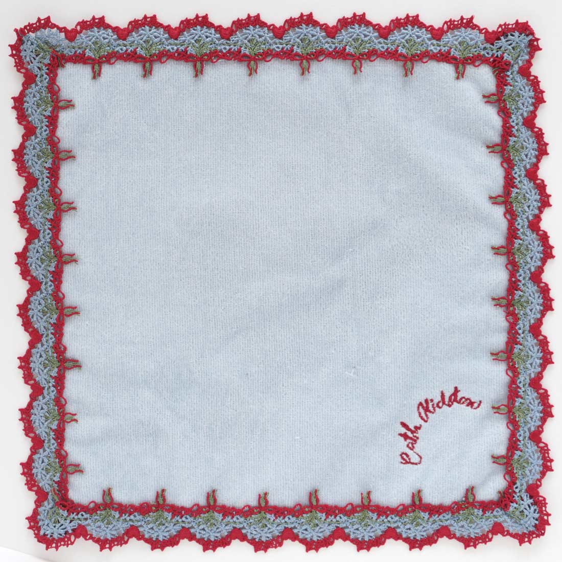 アイコンモチーフのブーケ柄のレースで縁取った目を惹く華やかなタオルハンカチ。