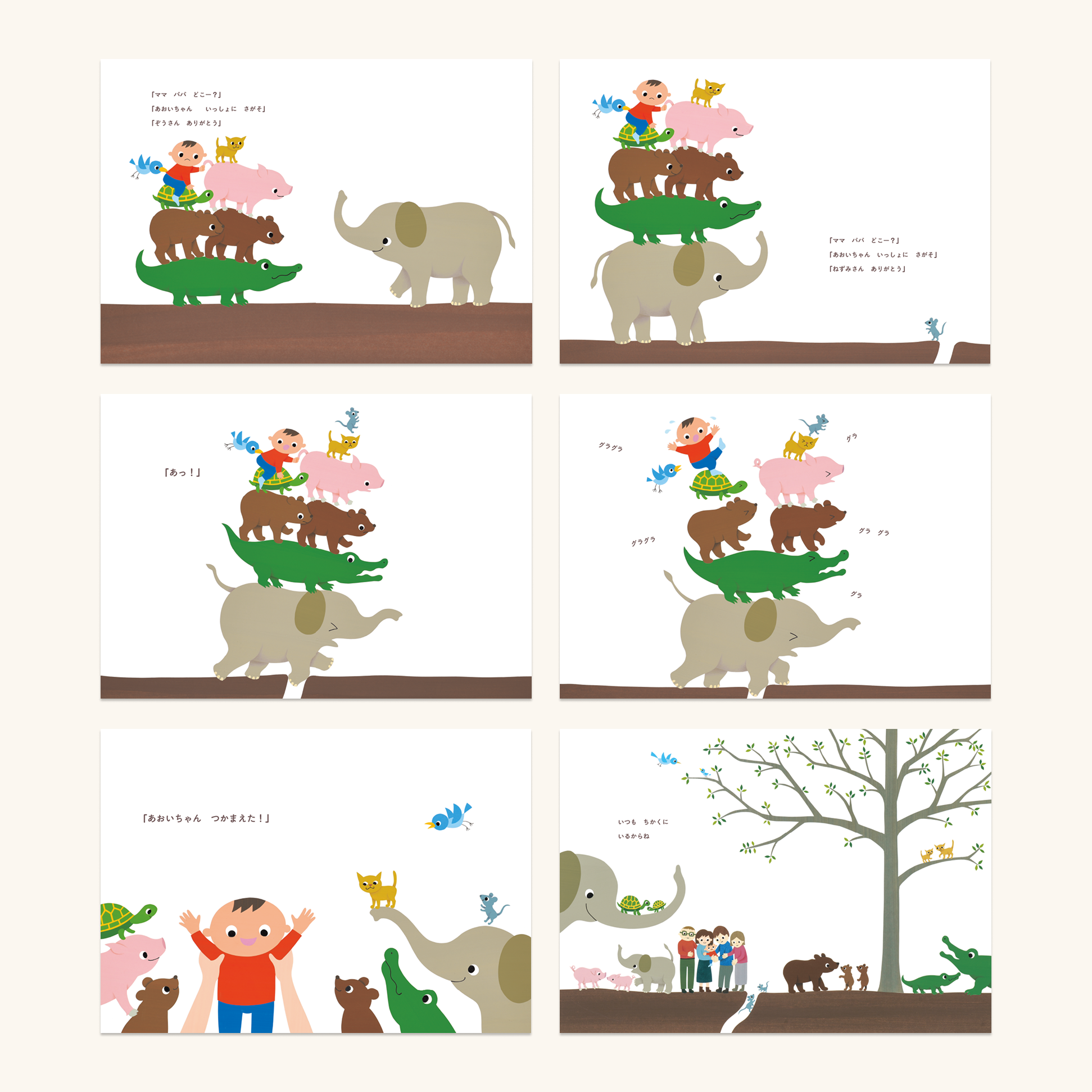 この世界に⽣まれてきたばかりの⼩さな⼦どもたちに、私たちが贈れるもの。それは「この世界は、美しくて、おもしろいところ」だと、⽬で、声で、⼿で、教えてあげること。 kimoto の絵本は、読み⼿と⼦どものコミュニケーションを⼤切につくられています。時に⼦どもをくすぐったり、⼀緒にからだを動かしながら、他者への信頼感や世界への好奇⼼を、kimito の絵本でたっぷりと育んであげてください。