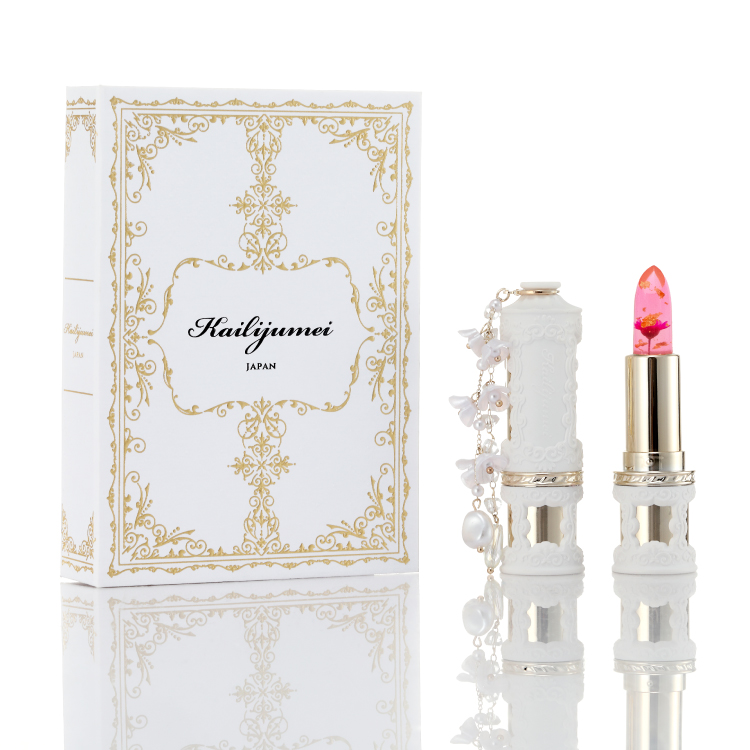 「カイリジュメイ」を製作するメーカーは、元々は他社製品のOEMを行う工場でした。2015年、日本やドイツの原料を使った新しい半透明の原料と出会いました。しかし当時は非常に高価な原料であったため、なかなか取扱いをしたり使い道を考えるメーカーはいませんでした。 ある日、 日本の写真家による、氷の中に花が閉じ込められた写真を見た開発担当が、透明なリップに花を閉じ込めたら可愛いのではないかと発想しました。しかし開発は難航。当時原料は透明ではなく、透明なリップは湿度や温度変化に敏感で完全に透明にするために何度も施策を繰り返しました。 その後世界的にヒットしたため、次は小花が入手困難になり買い回りに奔走。 透明なリップの金箔は純度98%のものを使用しており、唇に載せた瞬間溶けていきます。他のメーカーでは偽物の金箔を使っていたり、純度が低いものを使っているため、塗った時の効果が全く異なります。上述の通り海外の高価な原料を惜しみなく使っており、その世界観が発売5年以上経った今でも世界中の女性を魅了している理由です。