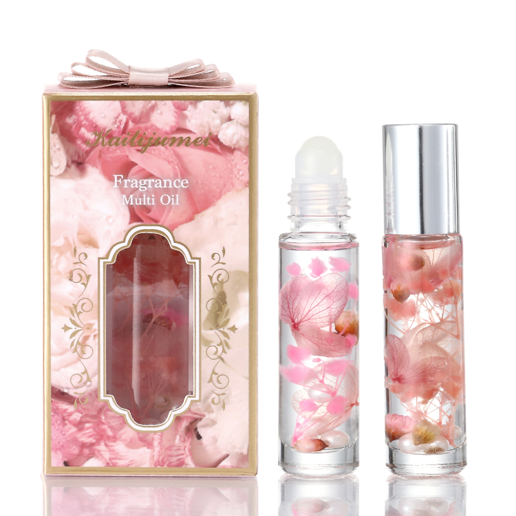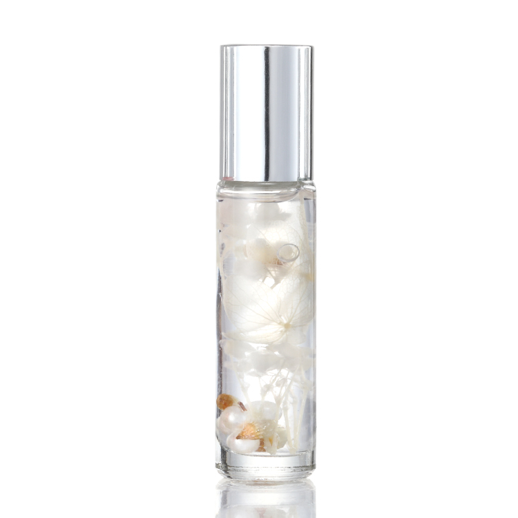 うるおいと香りを持ち運ぶロールオンオイル。本物のお花とコットンパールが入った、まるでハーバリウムのような香りつきマルチオイルミニ。