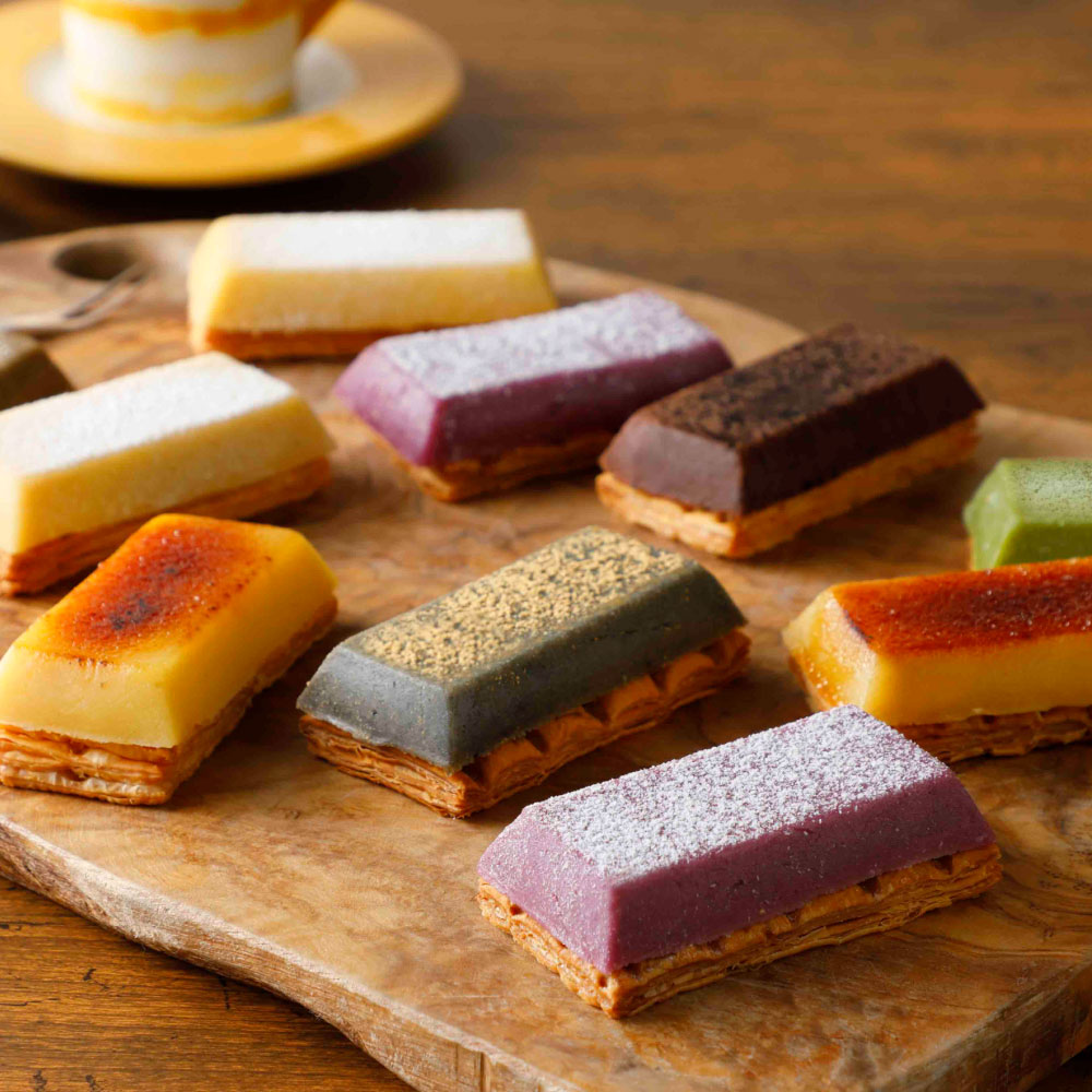 なめらかな口溶けのさつまいものペーストにサクサク256層のパイ生地を合わせた新食感のスイートポテトです。あえて焼かずに仕上げることでしっとりクリーミーな食感に仕立てています。全ての商品はパティシエがひとつひとつ手作業で仕上げています。
