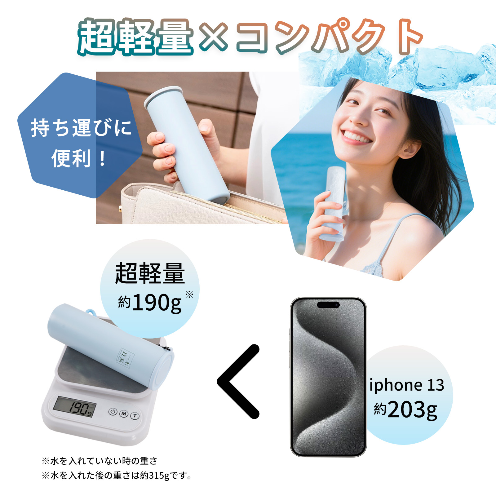 肌にやさしいシリコン素材&真空断熱構造で長時間冷温キープ。