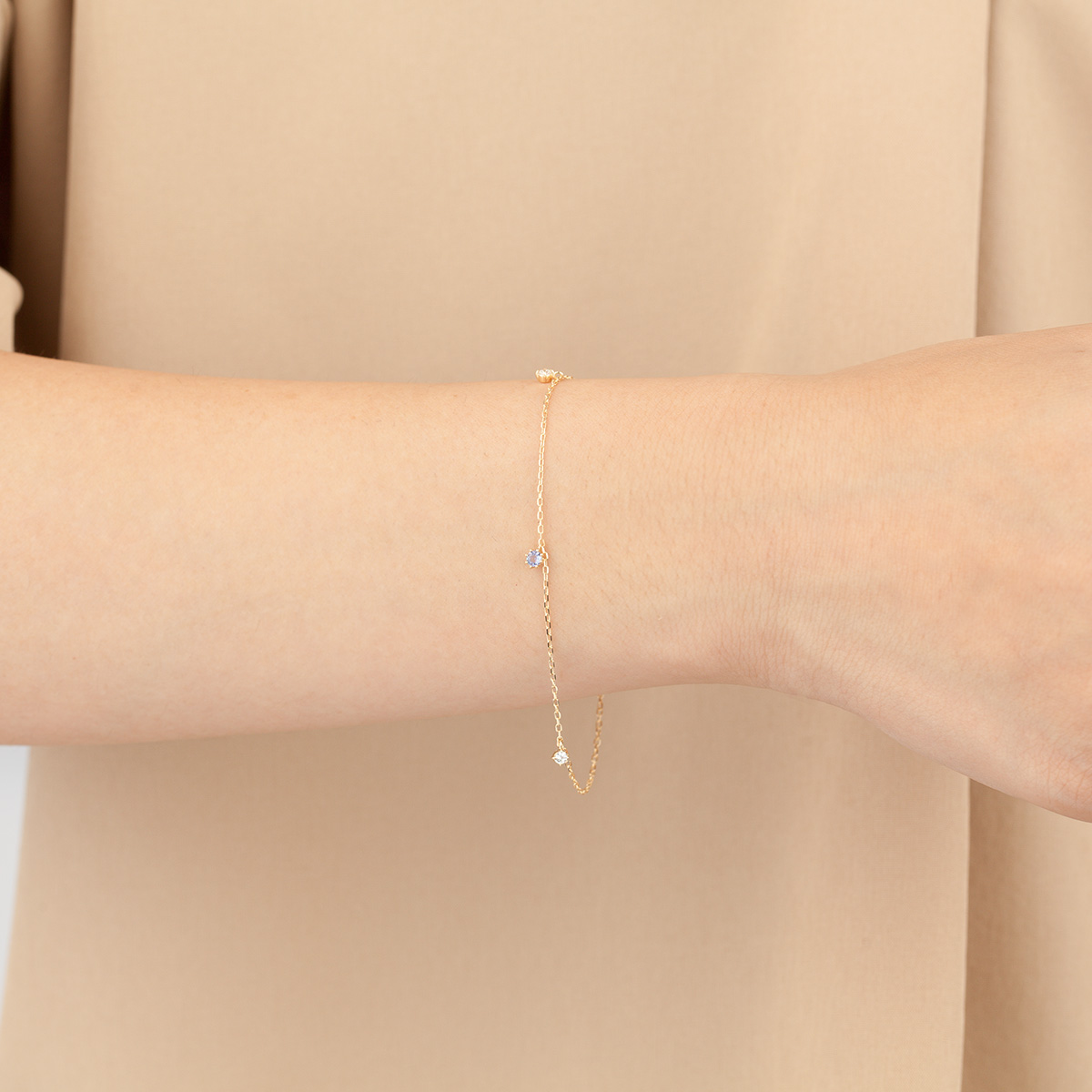動くたびにきらめくチャームが手元を鮮やかに彩る、誕生石をあしらったブレスレットです。 ※天然石を使用しているため、実際の色味や風合いが異なる場合がございます。
