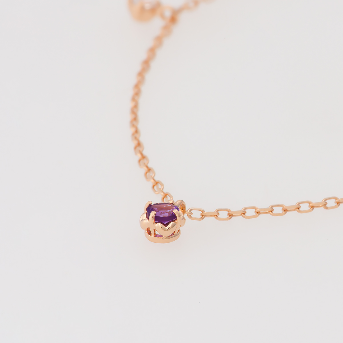 アメシストの石座には愛情の象徴であるハートが隠されていて、お守りのように身につけていただけるデザインです。