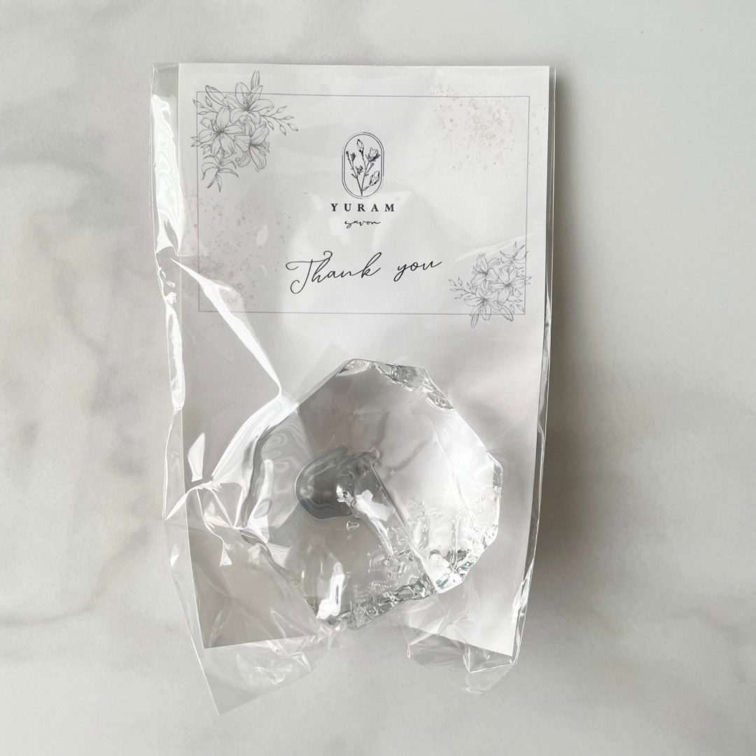 透明度の高いクリアのキャンドルは、手のひらにそっとのせると、まるで水晶のように澄んだ輝きを放ちます。 北海道・富良野産のグミワックスと、国内産大豆の芯を使用し、もちもちとした不思議な質感と繊細な透明感が特長です。 無香料タイプでどなたでも使いやすく、火を灯すと、小さな光が静かに心を包み込みます。 サイズ:約3×4cm(手作りのため誤差あり) 容量:約30g 燃焼時間:約5~9時間 無香料