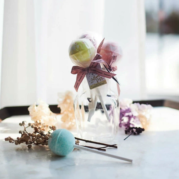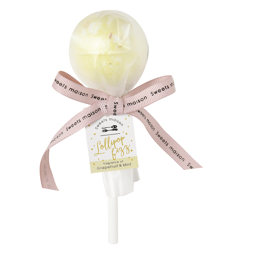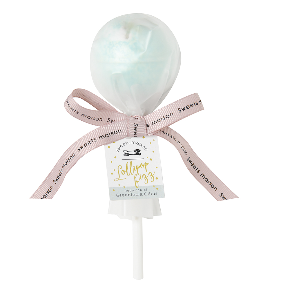 まるで本物のキャンディーのようなスティック付きのバスフィズ「ロリポップフィズ」。天然由来の保湿成分配合でしっかり保湿。