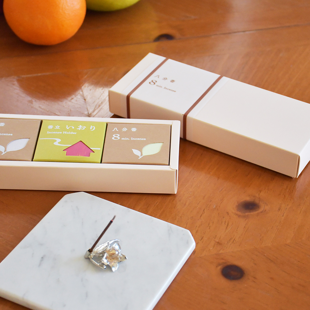 専用の箱に入れてお届けするので、プレゼントにも最適です。 気分転換、リラックスタイムに。また来客の前や、お部屋の匂い消しにも。 八分香はその名の通り、燃焼時間がおよそ8分の短いお香なので、忙しい毎日の隙間時間で気軽に香りをお楽しみいただけます。 ちょっとした隙間時間に、お気に入りの香りで「香りの旅」へ。