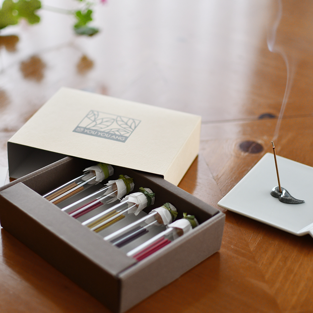 悠々庵は(ゆうゆうあん)は、日本国内で企画、パッケージングまですべての工程を手作りでおこなう、お香のブランドです。 ブランド名である悠々は「悠々自適」から由来しています。「悠々」と過ごせる時間をお客様の暮らしの中に…。 悠々庵のお香は、日本文化のみが持つ「侘・わび」「寂・さび」「粋・いき」をコンセプトとして作られた、すべて日本製です。 私たちは和紙や日本の花や木、香木を好んで使用し、手間から生まれる質感とその味わい深さを大切にしています。 生花の香りのような、自然に近い安らかな香りで「暮らしの中のお香」のご提案をしております。